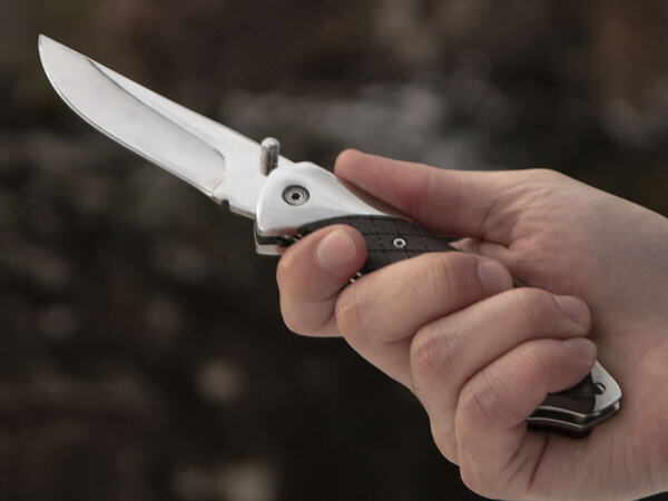 Нож «Буран» оснащен стопорным складным механизмом Liner Lock с защитой от произвольного самозакрывания. Это делает его более безопасным и удобным в работе. На клинке установлен пенек (шпенёк), который позволяет легко открывать нож одной рукой.