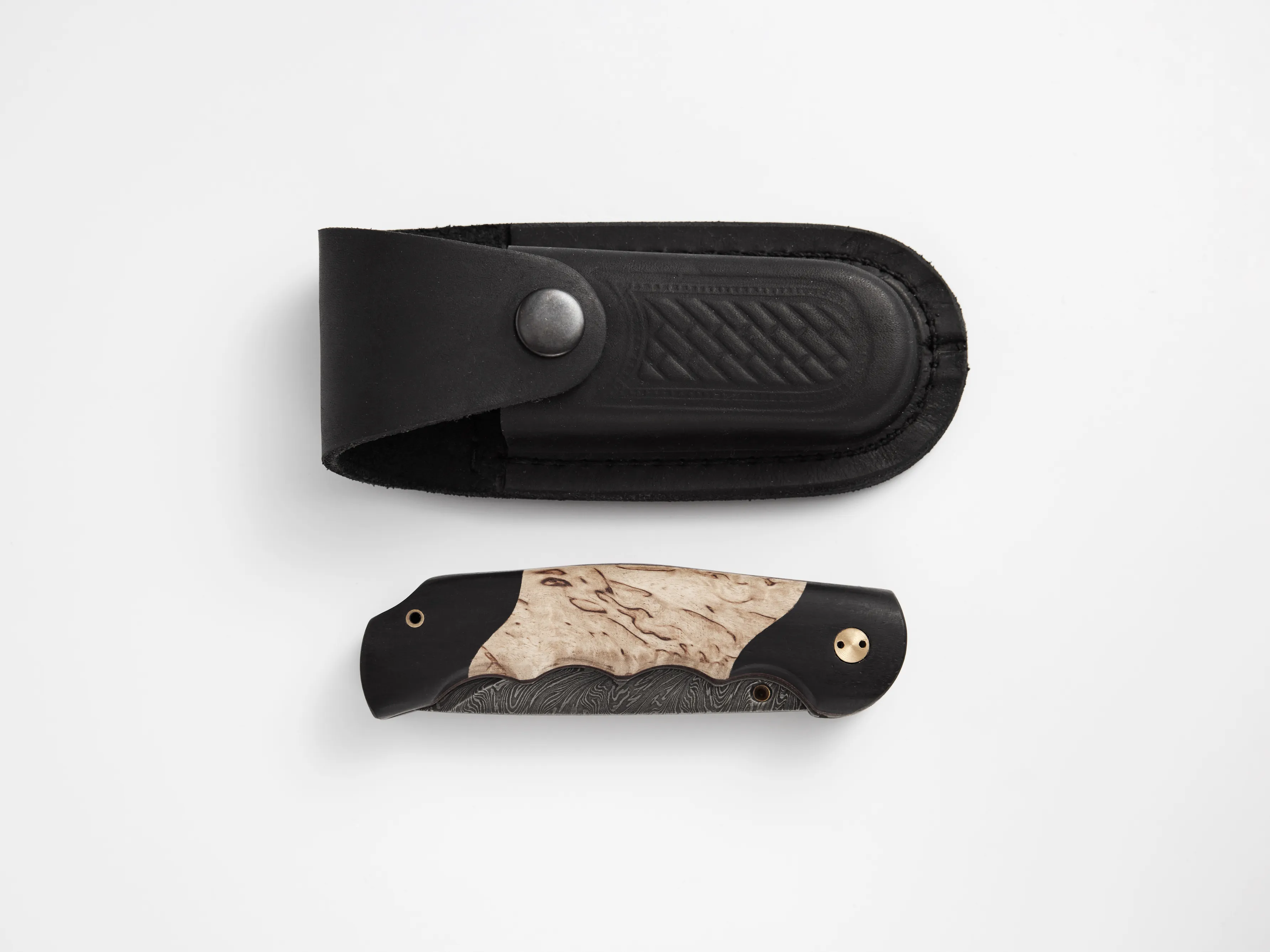 Компактный складной нож с выразительным дизайном с клинком из дамасской стали и комбинированная рукоятью из карельской берёзы и чёрного граба. Модель подойдет для повседневного ношения, выездов на природу, охоты, рыбалки и станет достойным презентом.