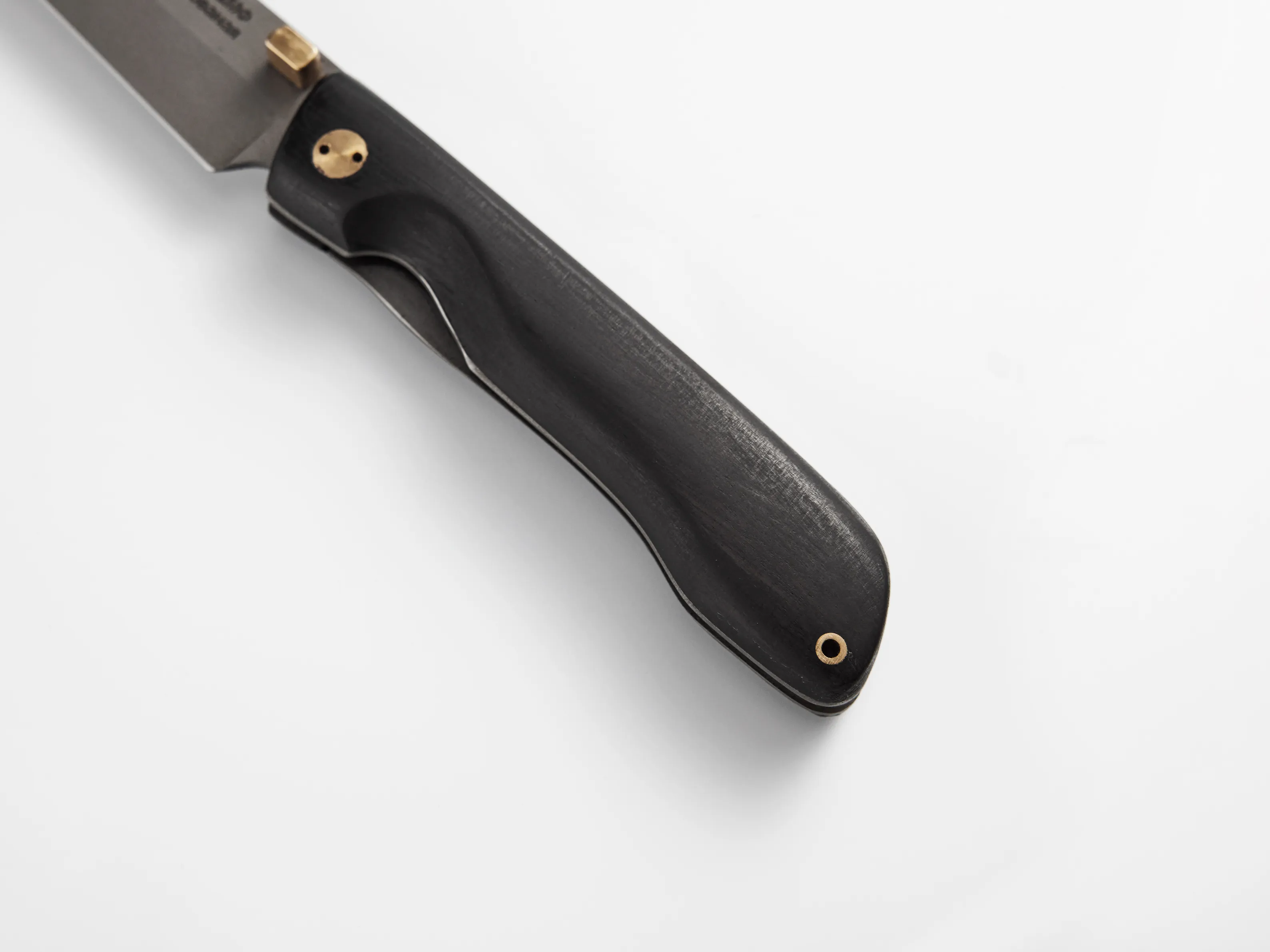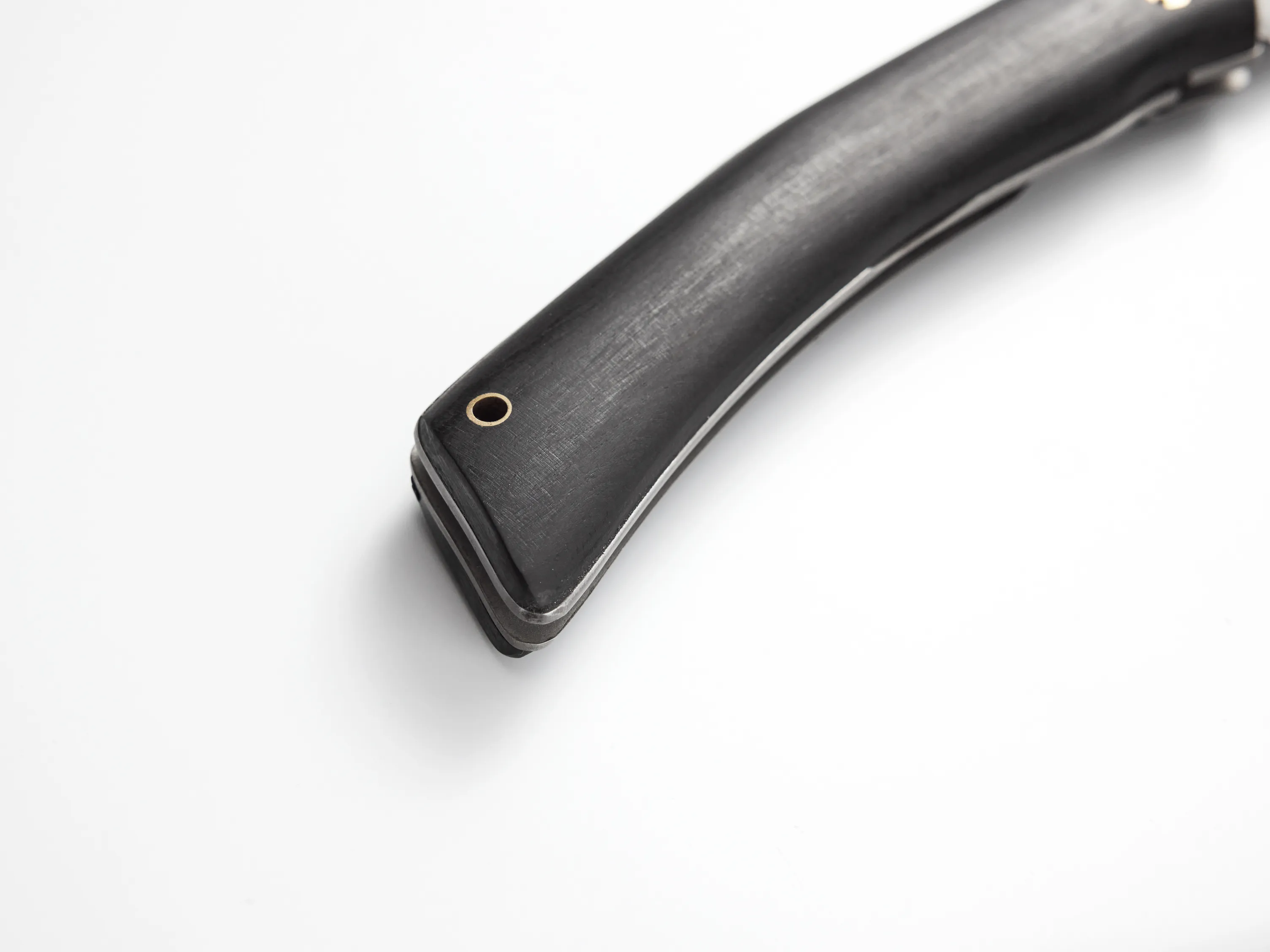 Элегантная рукоять ножа изготовлена из черного мореного граба, прочной и влагостойкой древесины. Ее называют «корабельным деревом». Материал устойчив к трещинам, кислотам, грибкам и плесени.