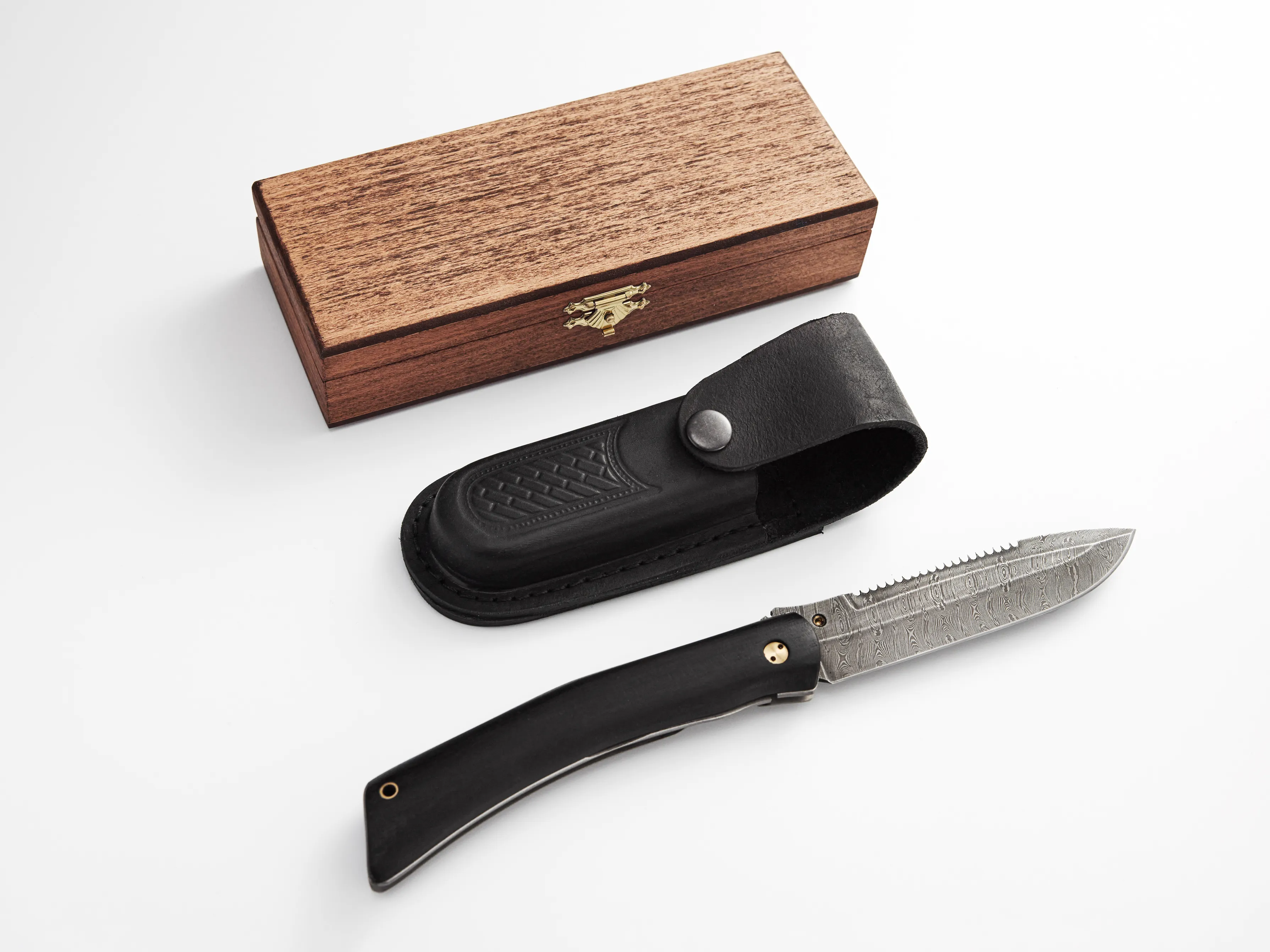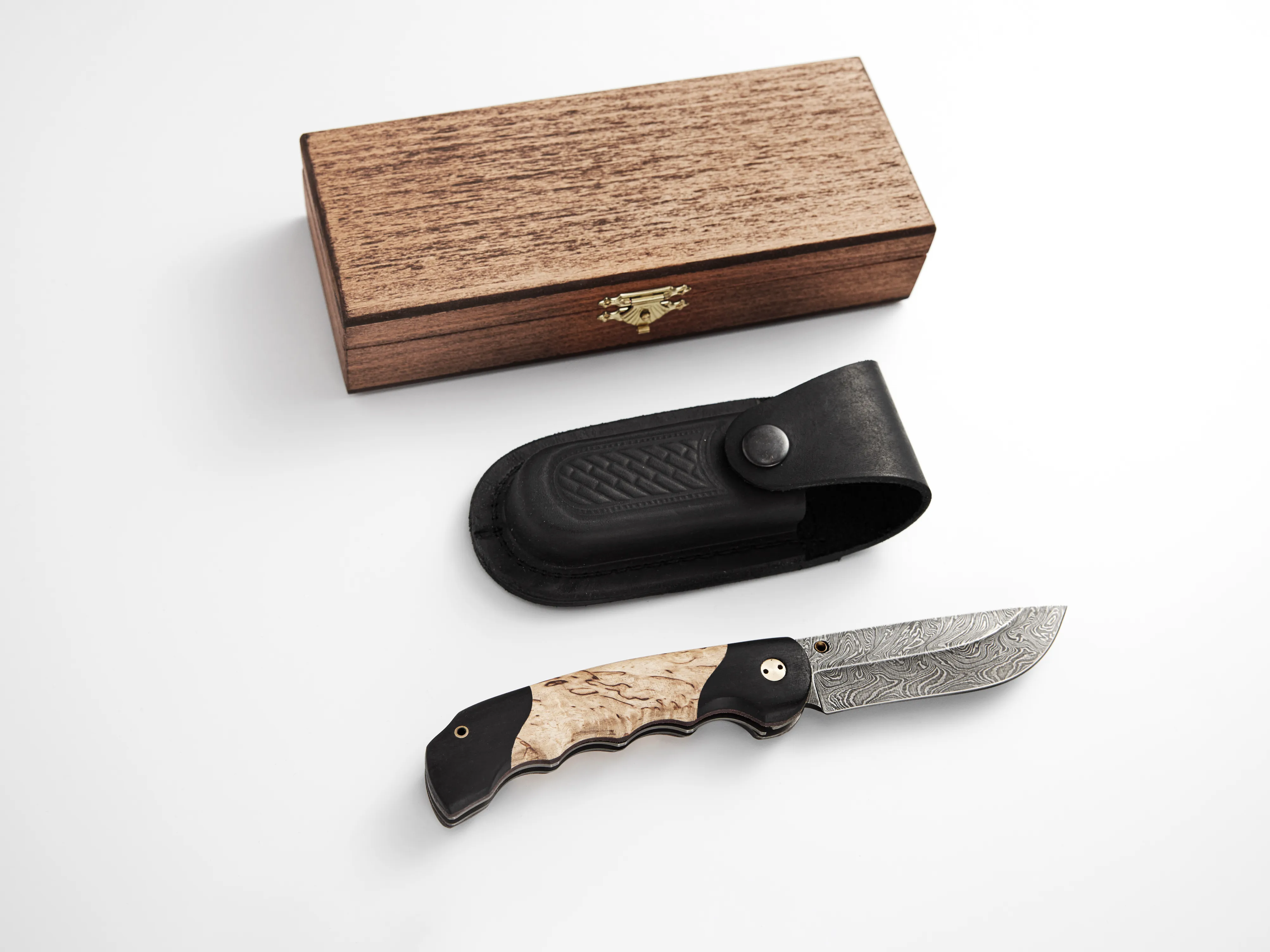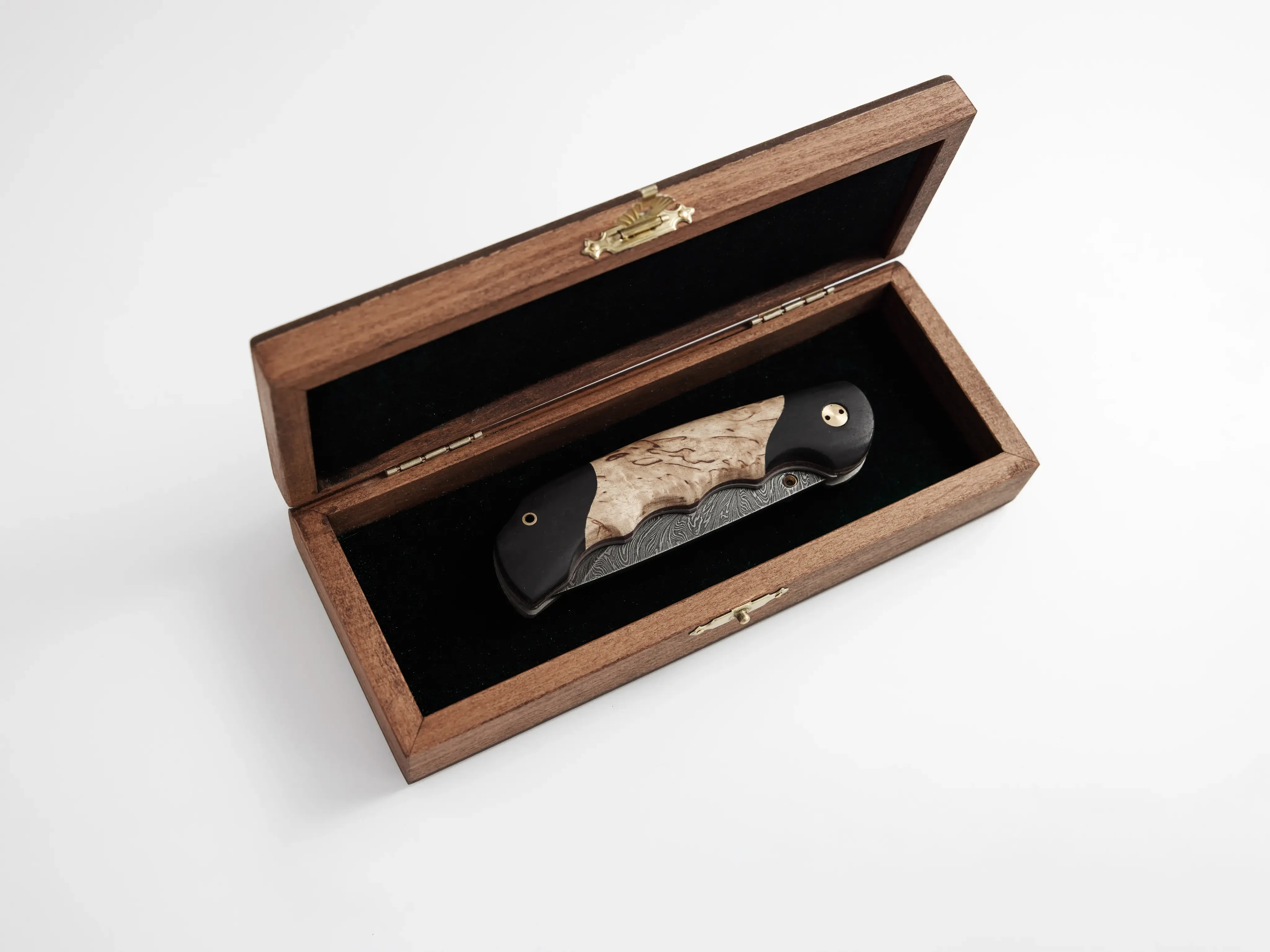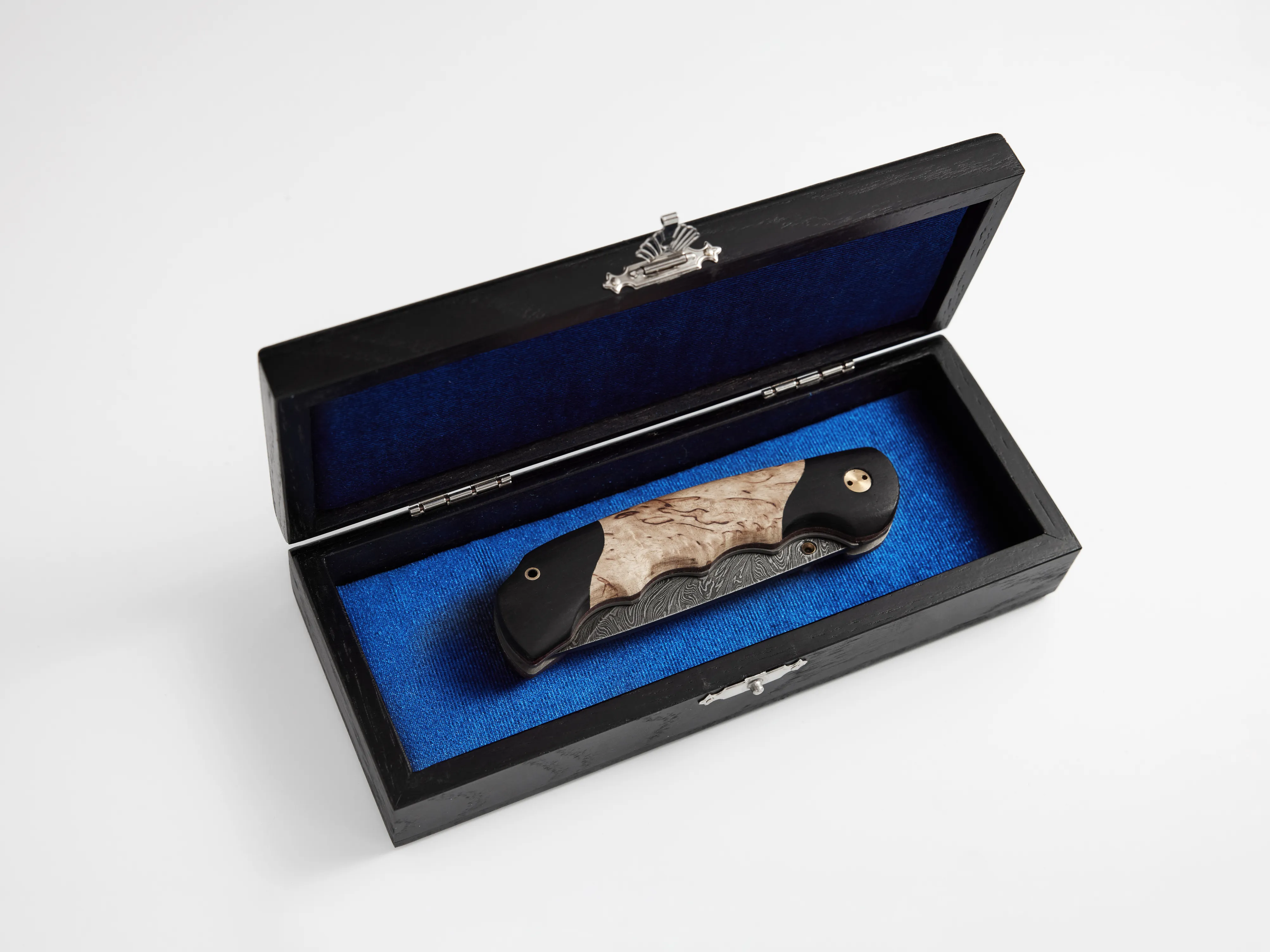 По желанию нож можно дополнить подарочной шкатулкой из бука или дуба. Такой вариант хорошо подходит для подарка и делает подачу более завершенной.