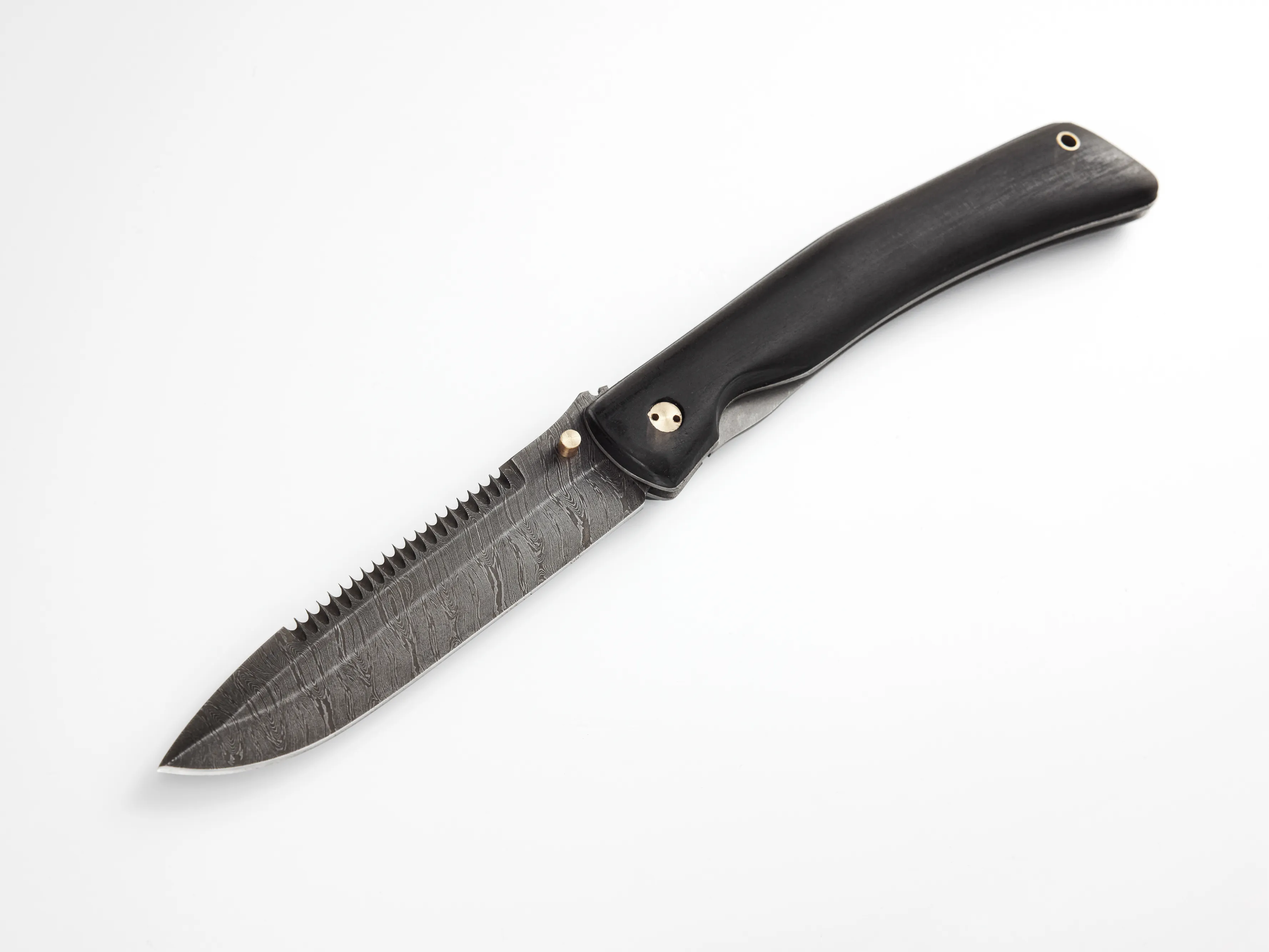 Компактный складной нож "Нокс" ручной работы для повседневного ношения с клинком из кованой стали Х12МФ и рукоятью из чёрного морёного граба. Модель оснащена надёжным замком Liner Lock, открывается одной рукой.