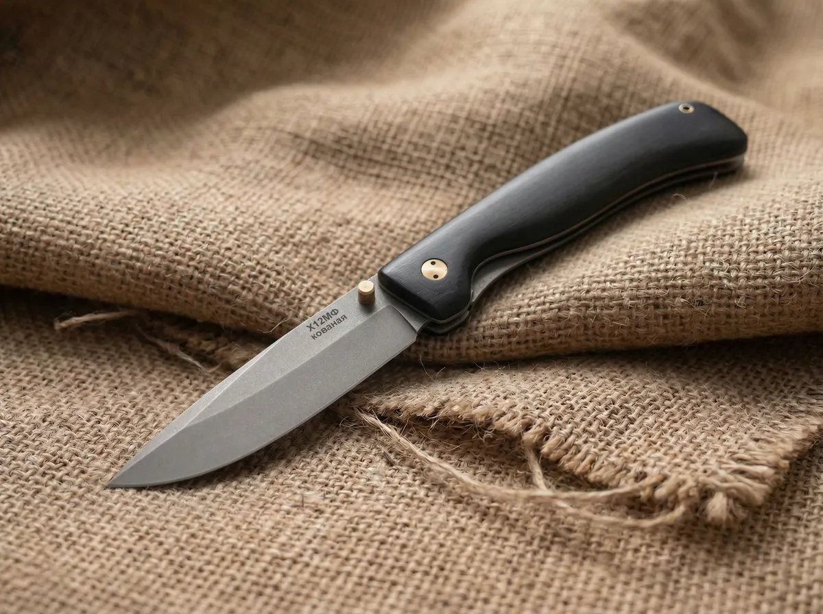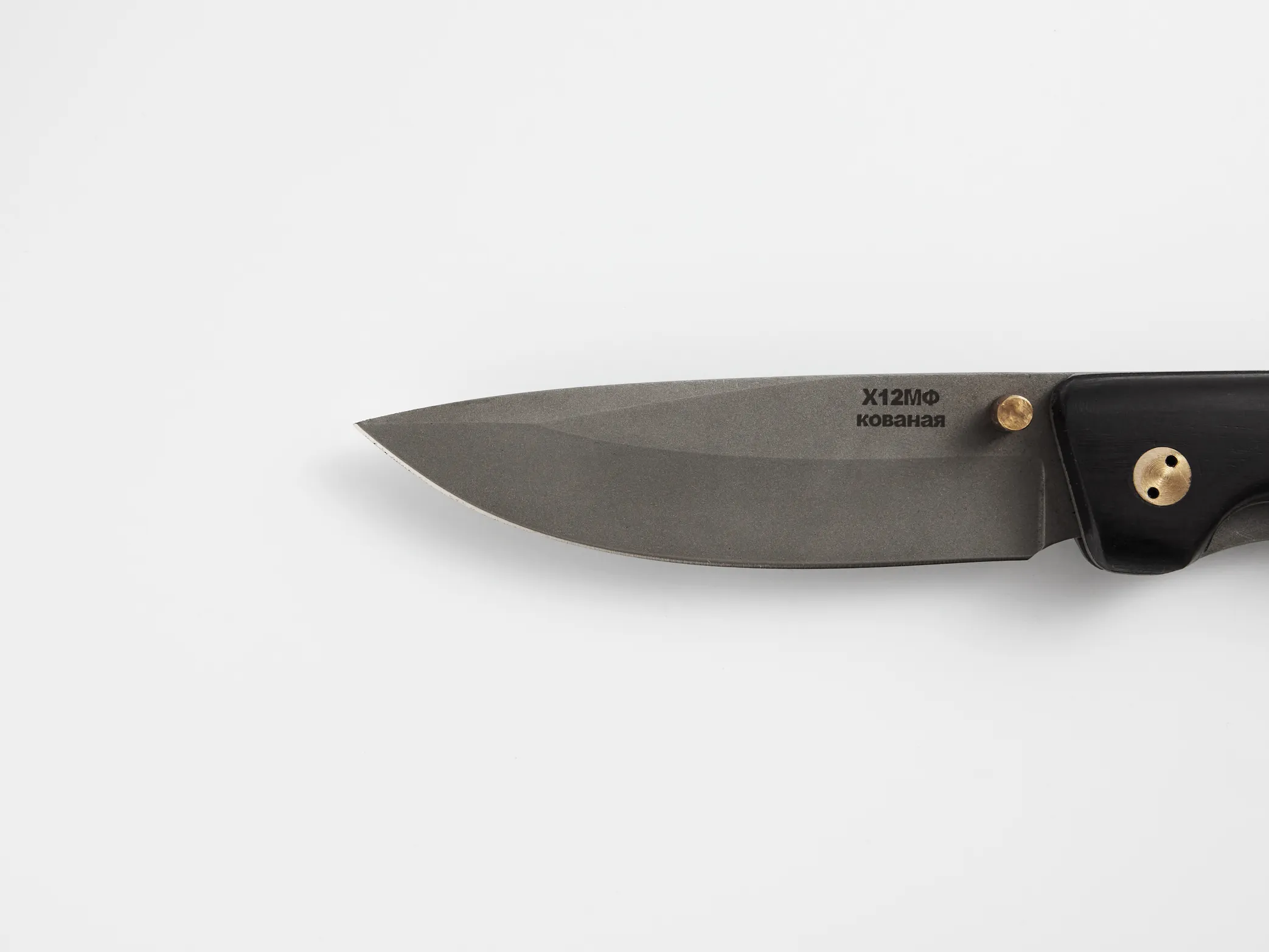 Клинок изготовлен из ламинированной стали. Центральный режущий слой выполнен из У10А, а обкладки из никеля. После закалки твёрдость достигает 60–61 HRC, благодаря чему нож хорошо держит заточку, уверенно режет и подходит для повседневного использования.
