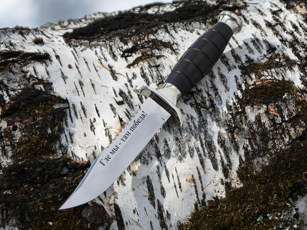 Клинок выполнен из высокоуглеродистой стали, что гарантирует отличный рез и хорошую износостойкость. Благодаря высокой прочности сталь 95х18 прекрасно показывает себя при использовании под нагрузкой. Твердость клинка после закалки составляет 58-59 HRC.