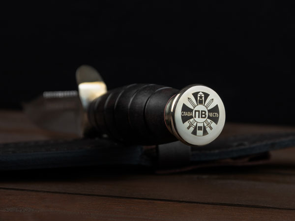 Нож представляет собой конструктивно точную реплику холодного оружия пограничников. Его строгая и благородная форма соответствует воинскому духу мужества, достоинства и чести. На тыльнике ножа расположена символика пограничных войск, на голомень клинка нанесен их боевой девиз.