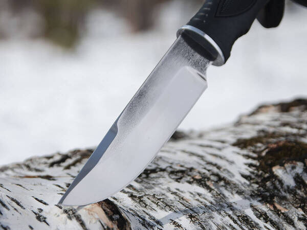 Твердость клинка после закалки составляет 58-59 HRC. Лезвие очень острое и долго держит заточку.