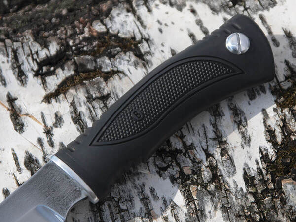 Нож имеет два варианта исполнения – с дюралевым больстером и с гардой. Гарду можно поставить вместо больстера, открутив болт и сняв резиновую рукоять.