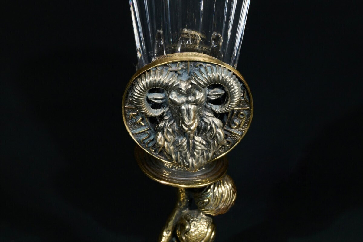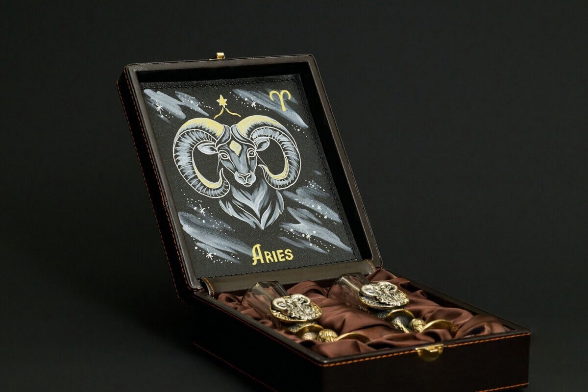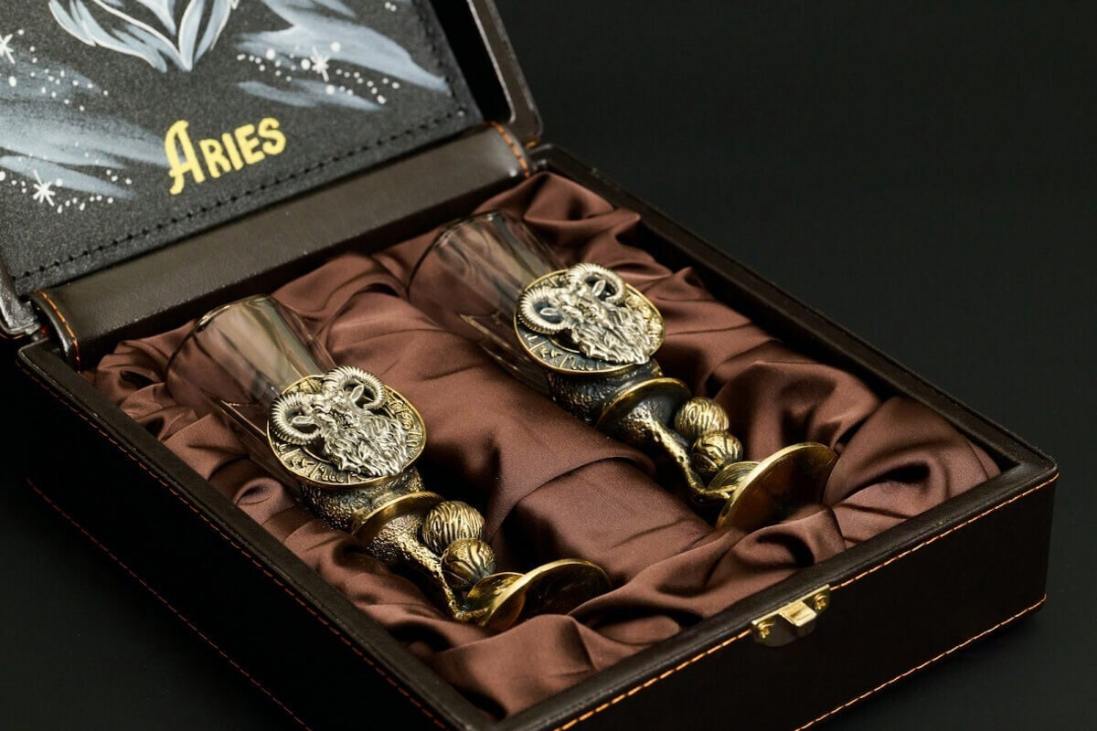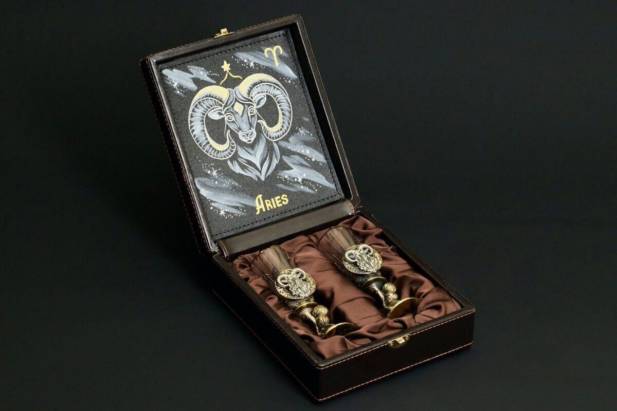 Акцентом этого подарочного набора является искусно выполненное художественное литье из патинированной латуни, которым оформлен каждый из лафитников. Оцените мастерство автора, который передал в металле мельчайшие детали знака зодиака.