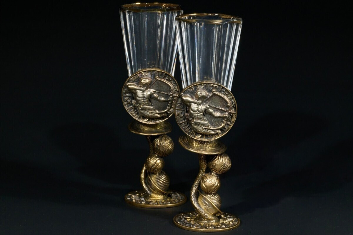 Акцентом этого подарочного набора является искусно выполненное художественное литье из патинированной латуни, которым оформлен каждый из лафитников. Оцените мастерство автора, который передал в металле мельчайшие детали знака зодиака.