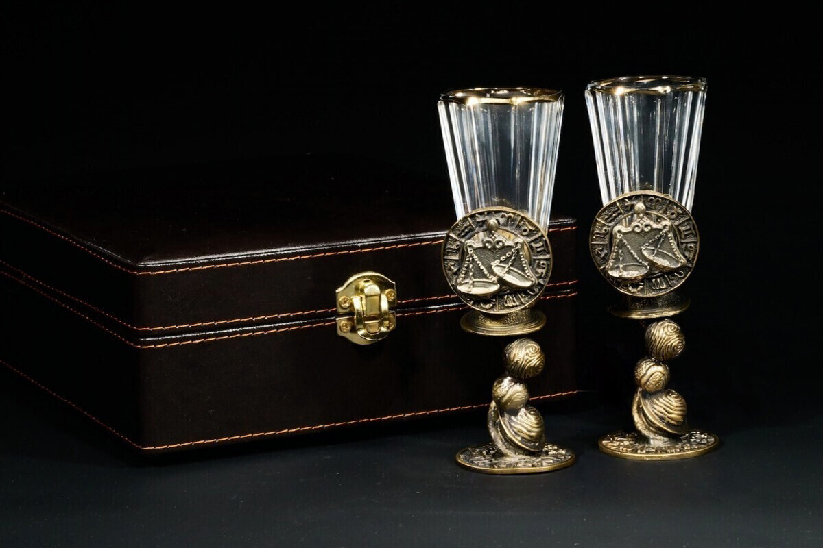 Акцентом этого подарочного набора является искусно выполненное художественное литье из патинированной латуни, которым оформлен каждый из лафитников. Оцените мастерство автора, который передал в металле мельчайшие детали знака зодиака.