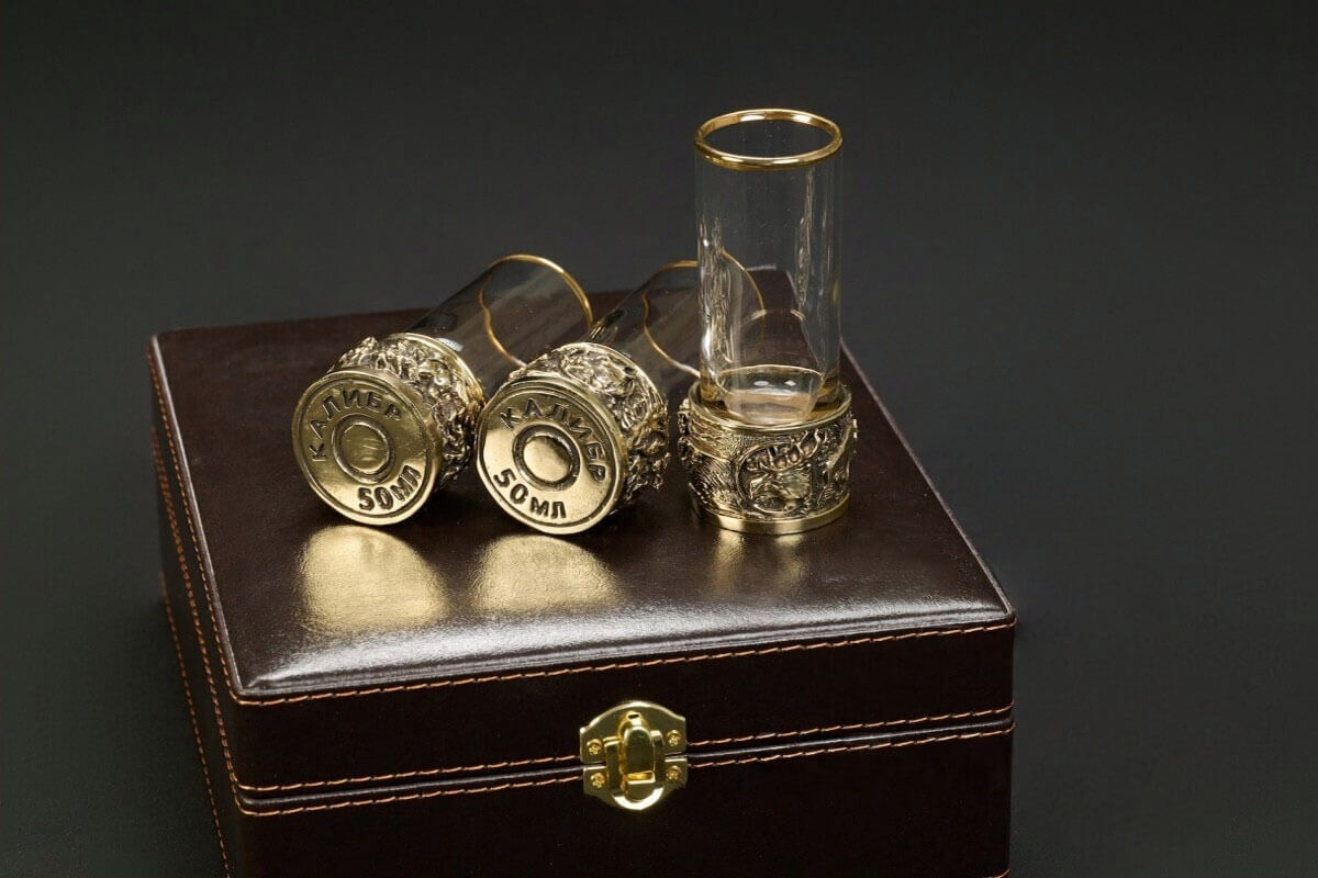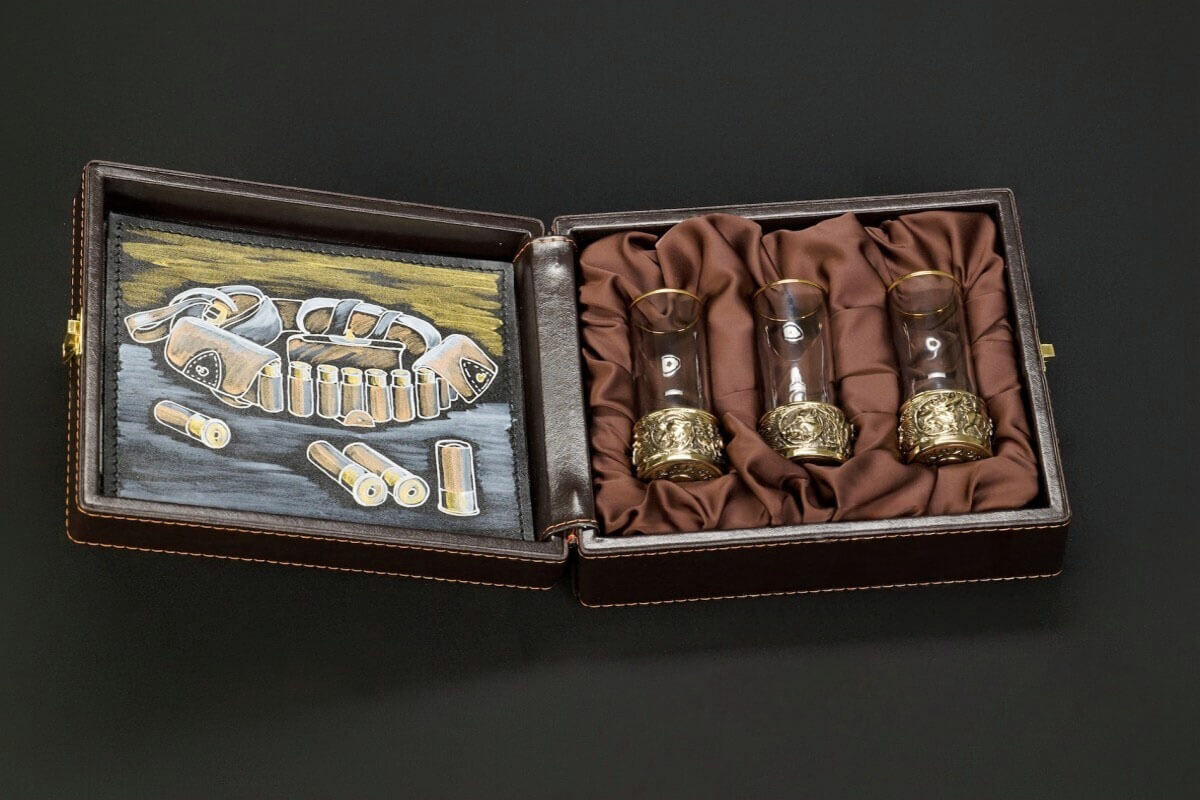 Набор стопок патрон "Охота" 3 шт. в подарочной кейсе с художественным оформлением