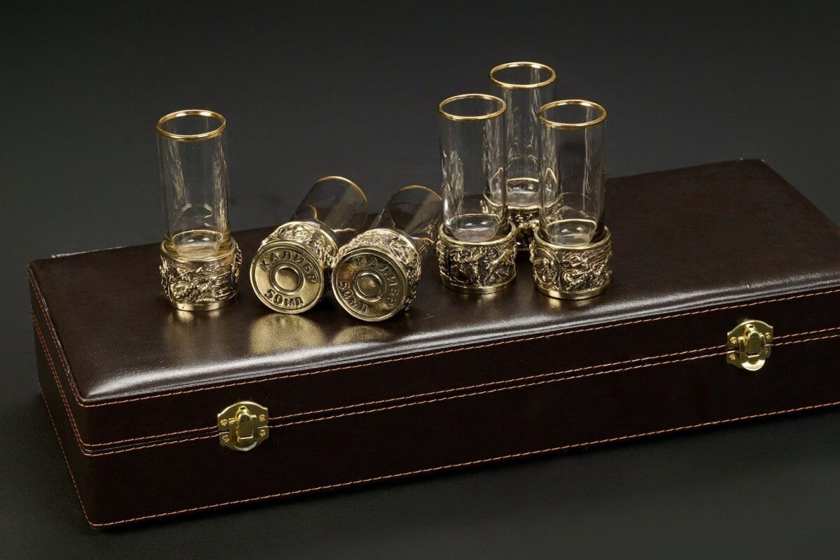 Набор стопок патрон "Охота" 6 шт. в подарочной кейсе с художественным оформлением