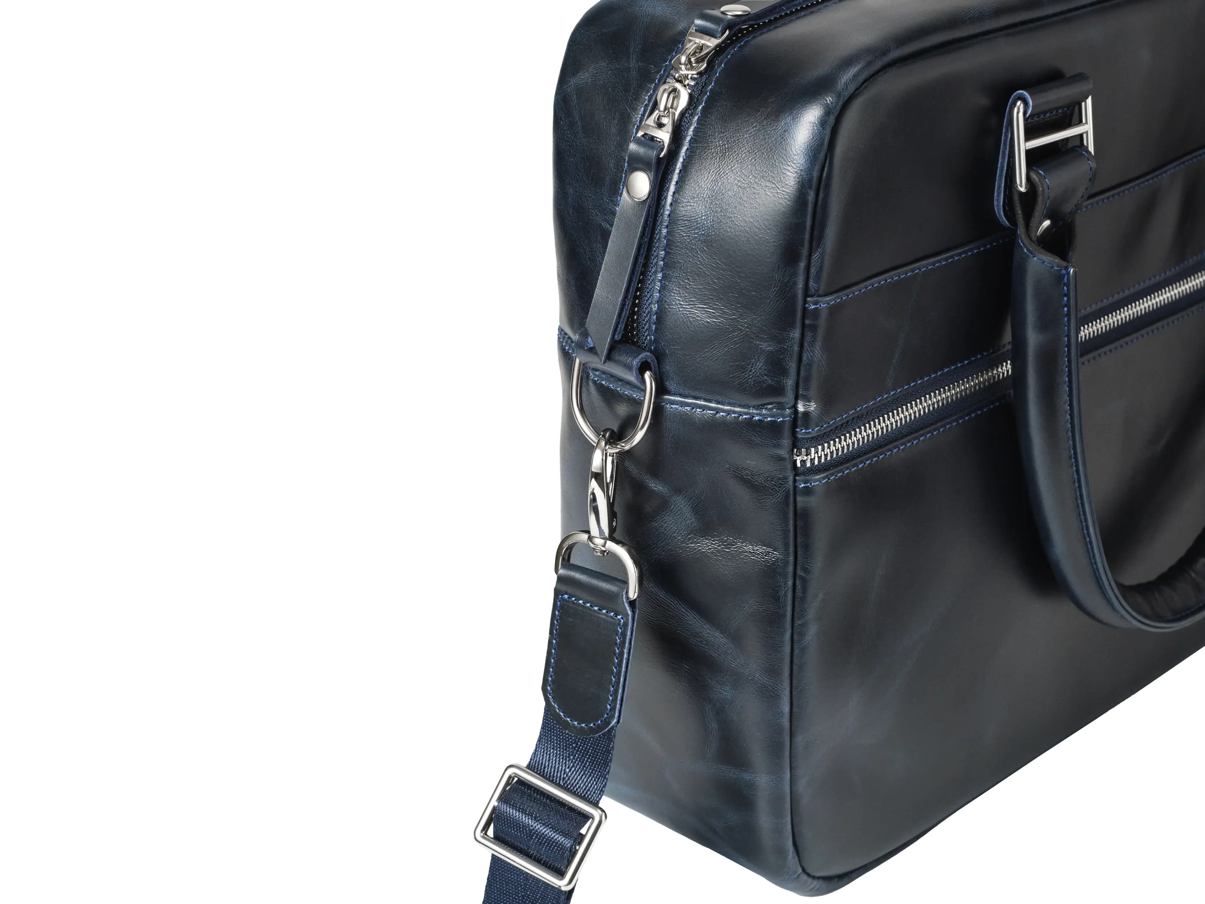 Глубокий тёмно-синий оттенок кожи с эффектом pull-up делает модель универсальной и современной. Сумка отлично сочетается с джинсами и пиджаком, чиносами и рубашкой, а также с классическим пальто или кожаной курткой. Сдержанный дизайн сохраняет уместность в любой ситуации.
