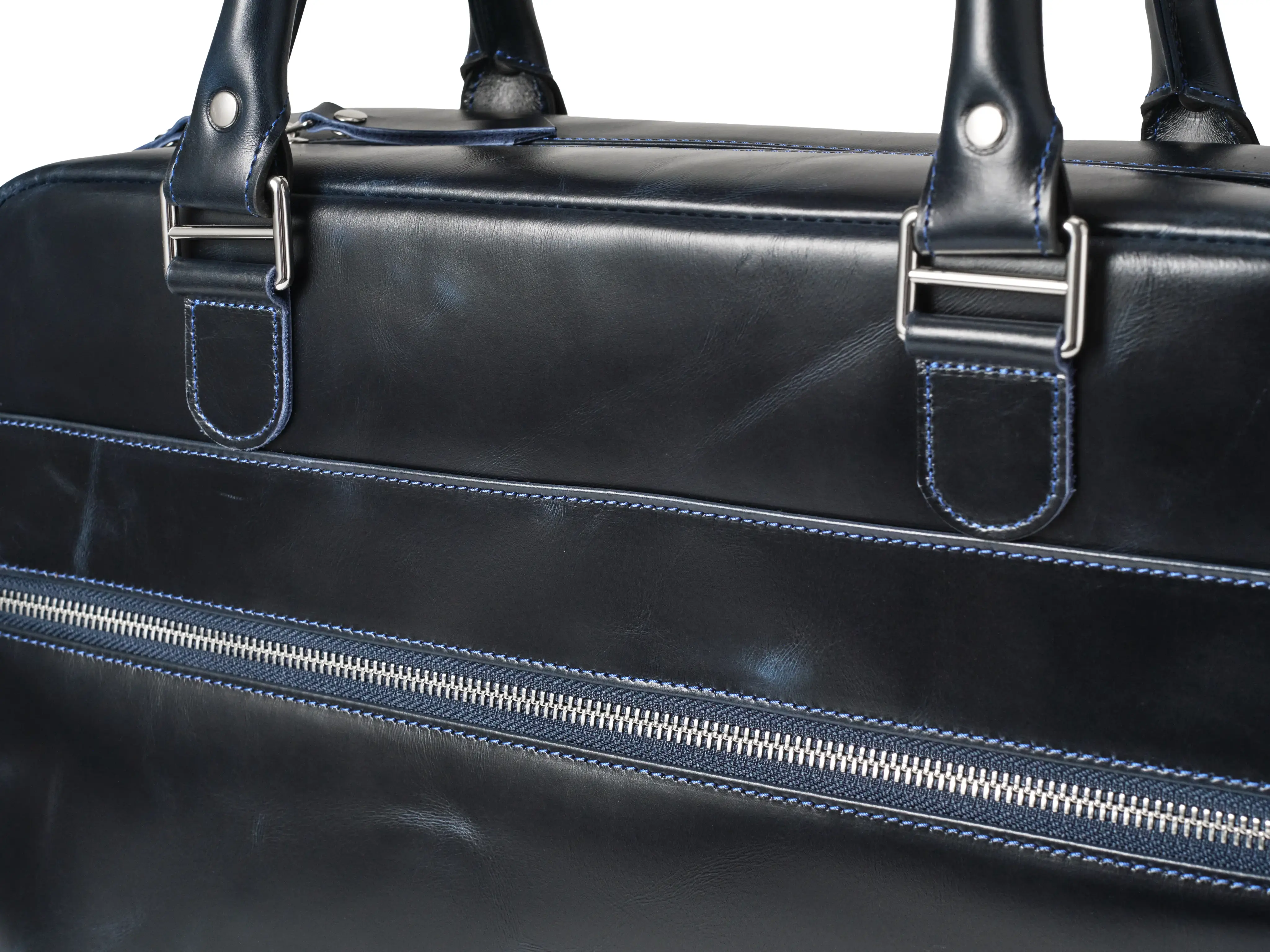 Деловая сумка "Alverio Dark Blue" – практичный аксессуар для повседневной городской жизни. Она органично вписывается в ритм дня: работа, встречи, поездки и дела.