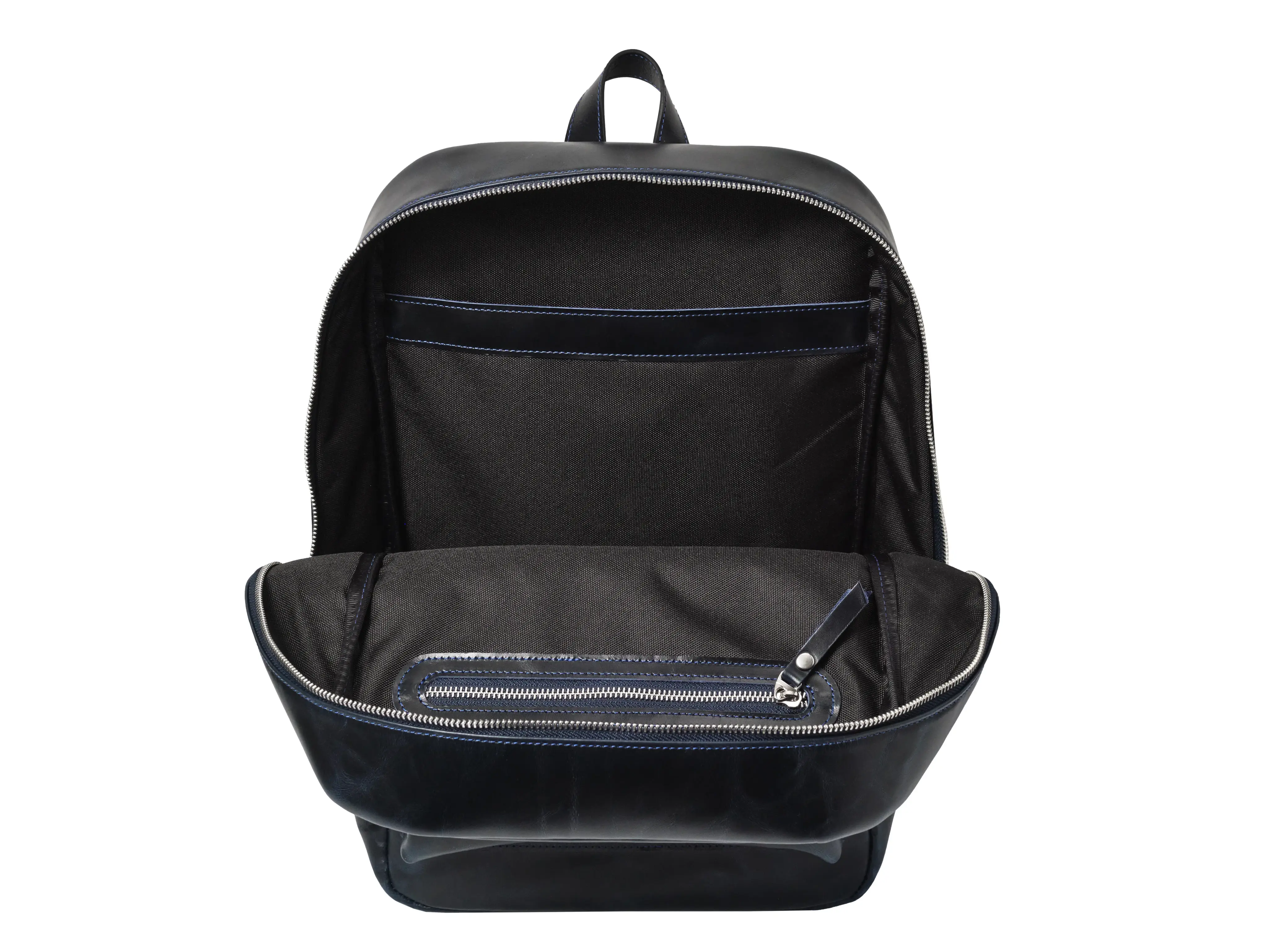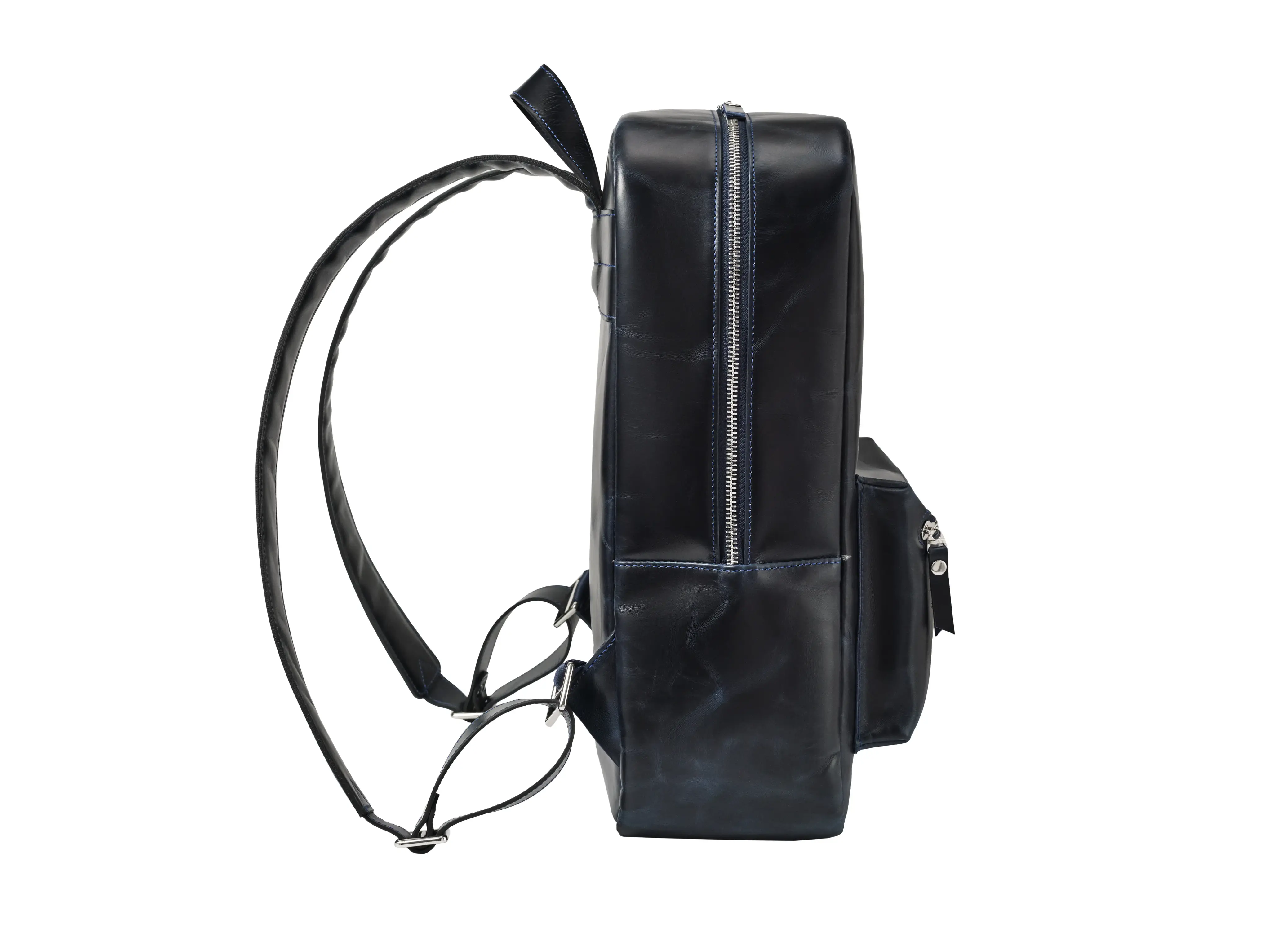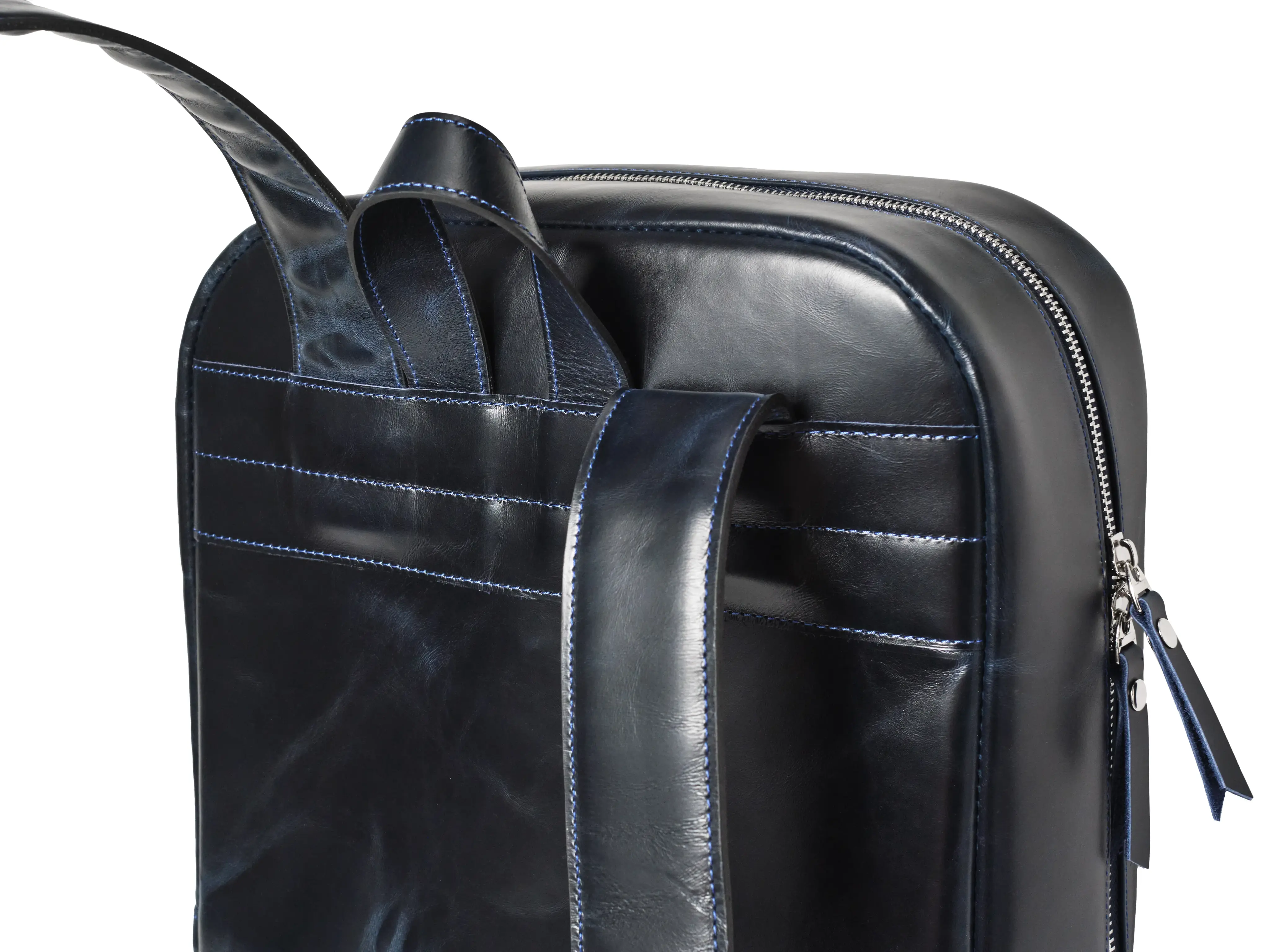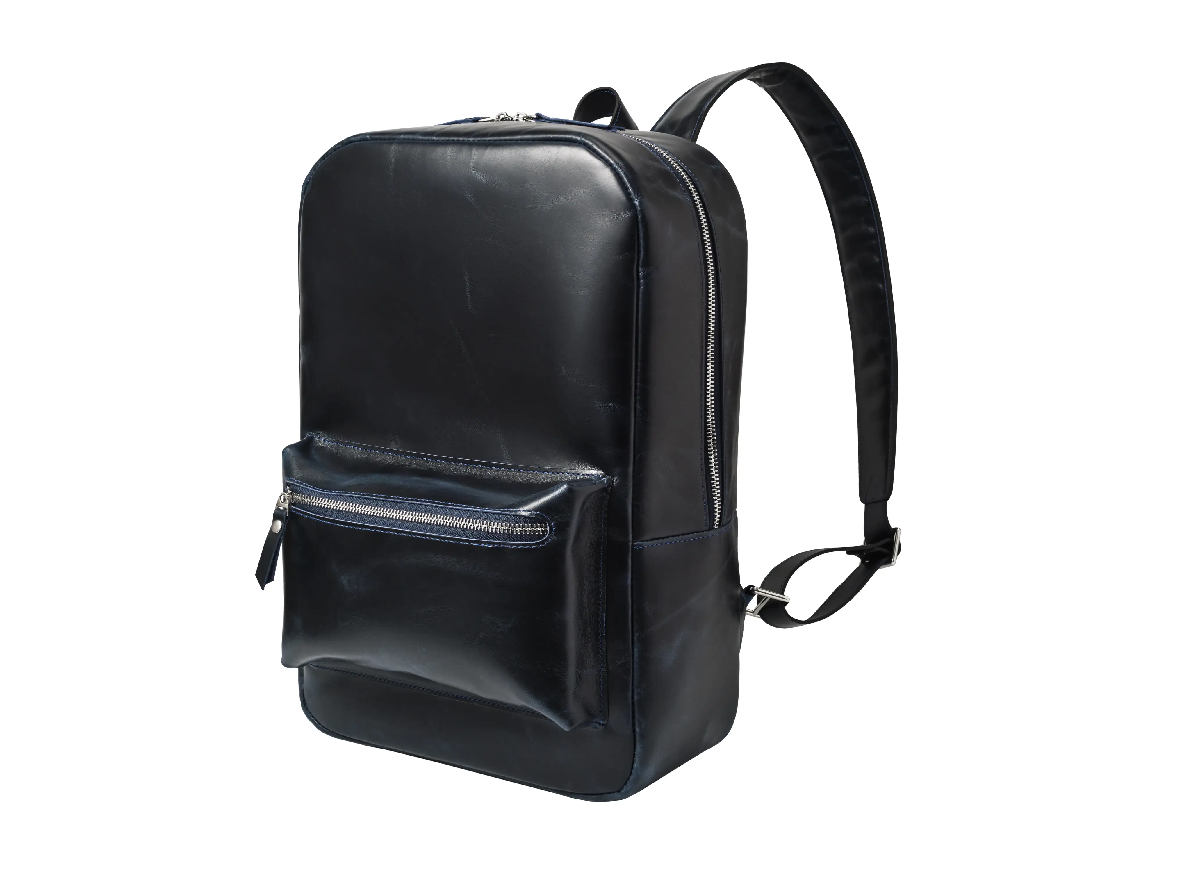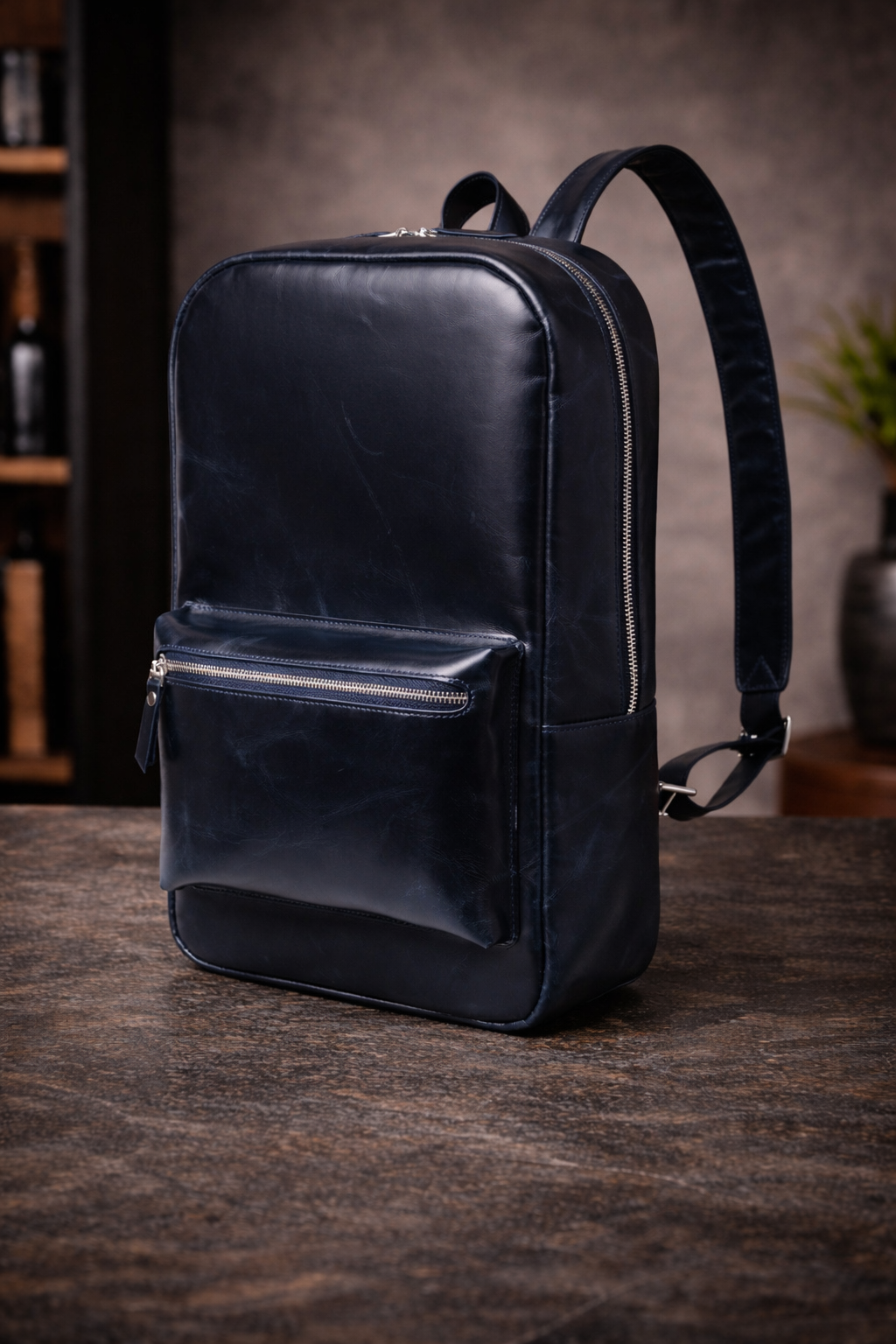 Благородный темно-синий цвет с эффектом pull-up и лаконичная форма делают рюкзак универсальным аксессуаром, который легко сочетается с деловым и повседневным стилем.