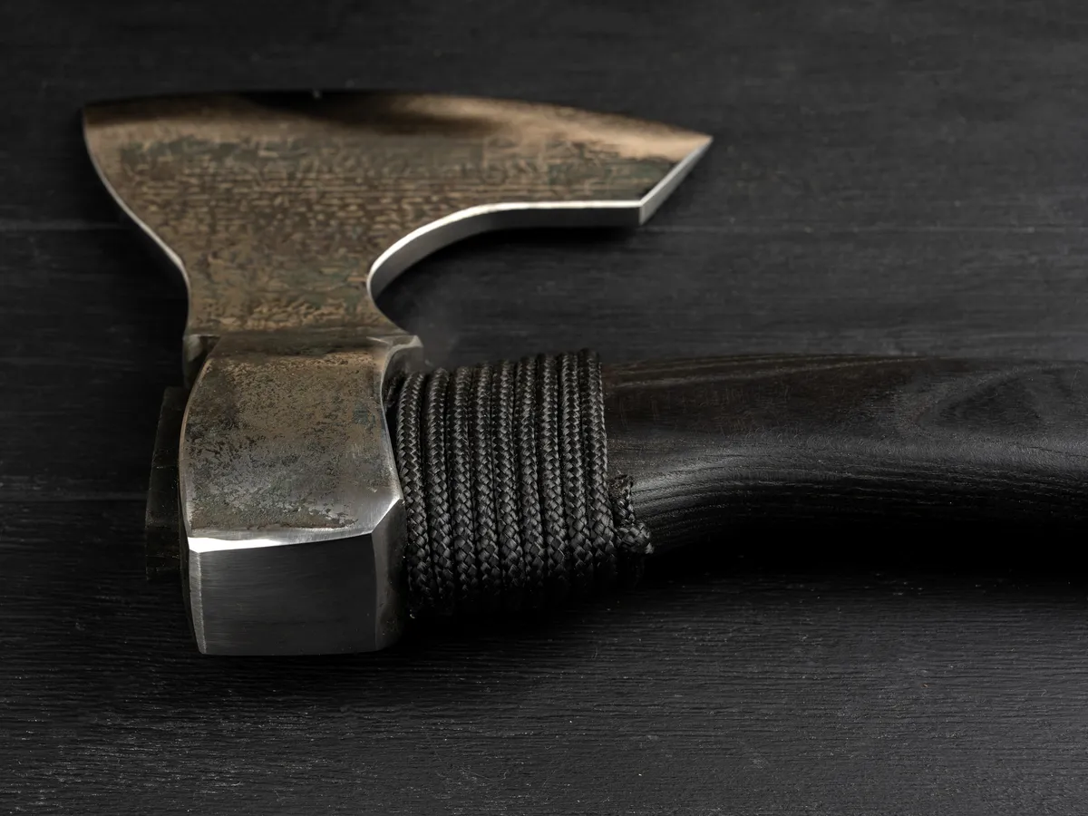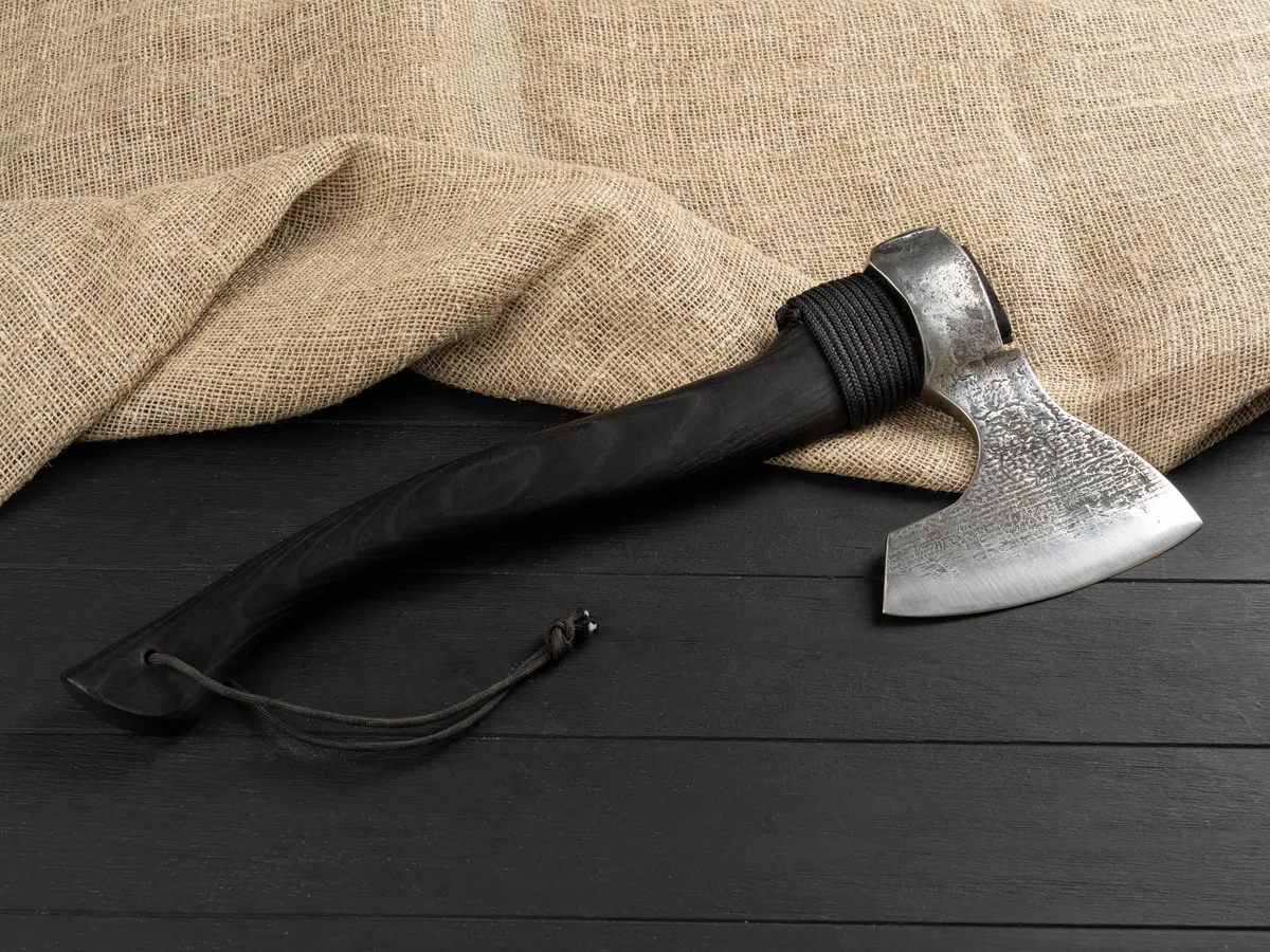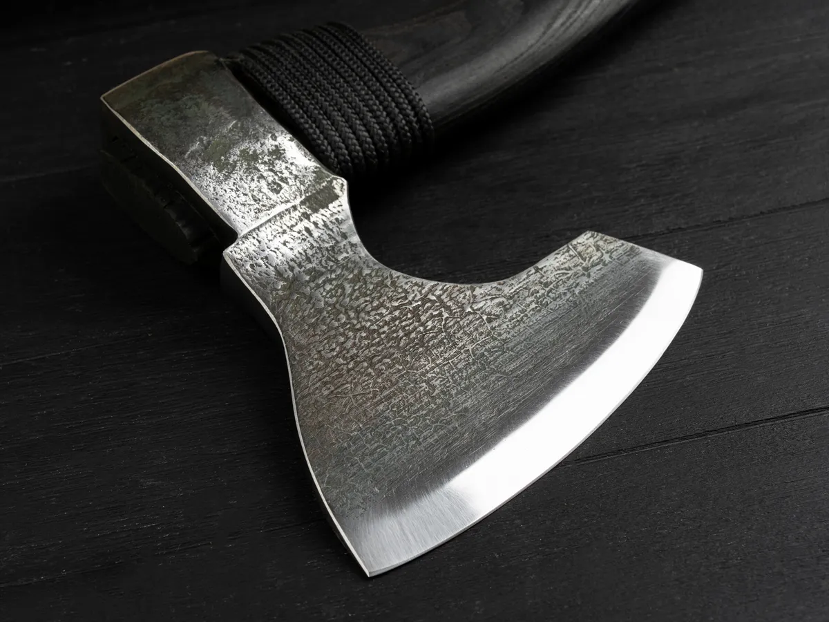 Рабочая часть выполнена из кованой высокоуглеродистой стали У8. Этот материал ценят за прочность, износостойкость и способность долго сохранять рабочие свойства. После закалки твердость стали составляет 55-56 HRC, что делает топор уверенным инструментом для регулярного использования в быту и на природе.