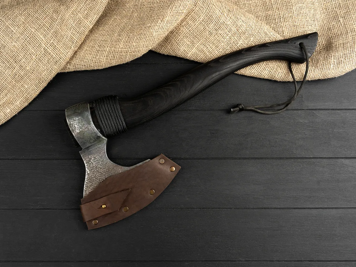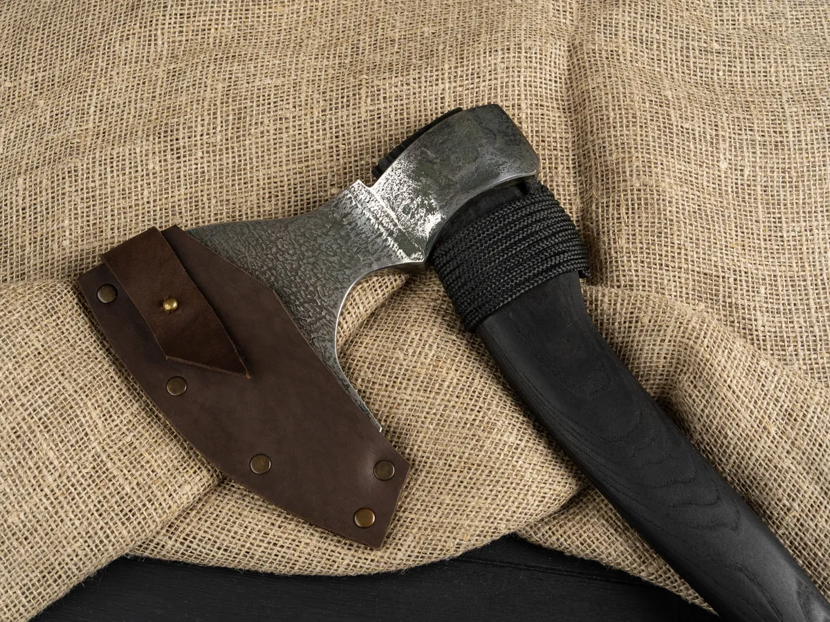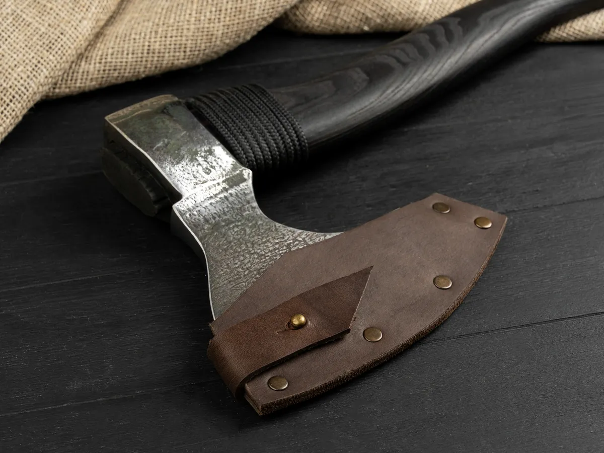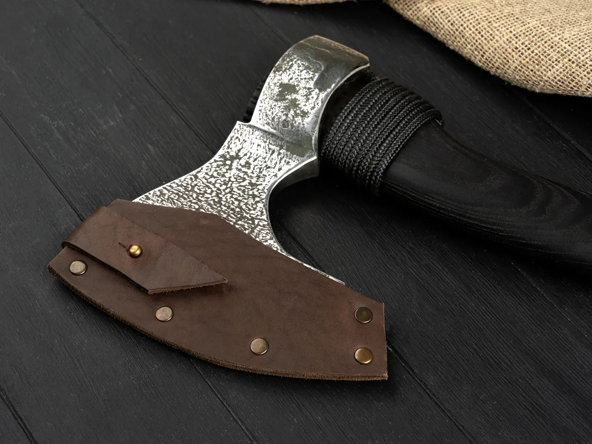 В комплекте идут ножны из натуральной кожи. Они защищают режущую кромку и позволяют безопасно перевозить и хранить топор.
