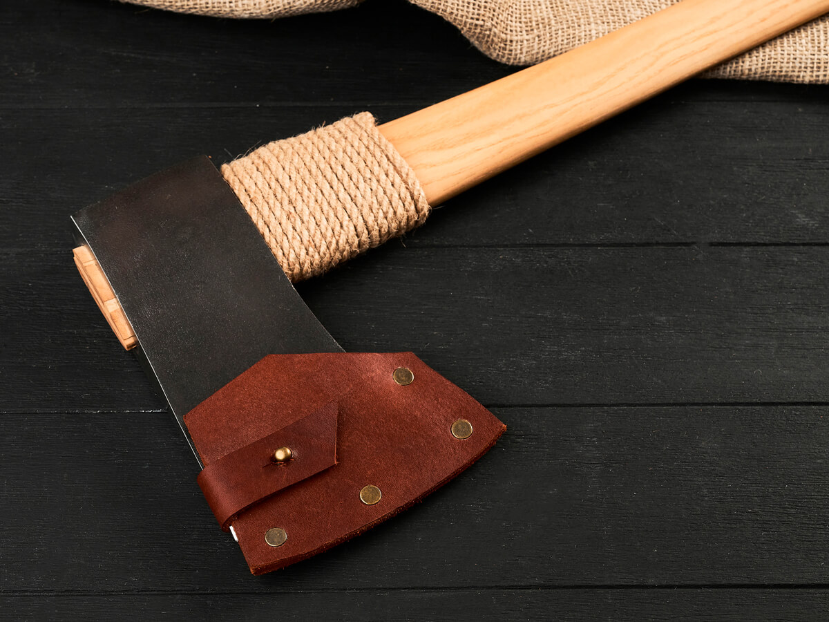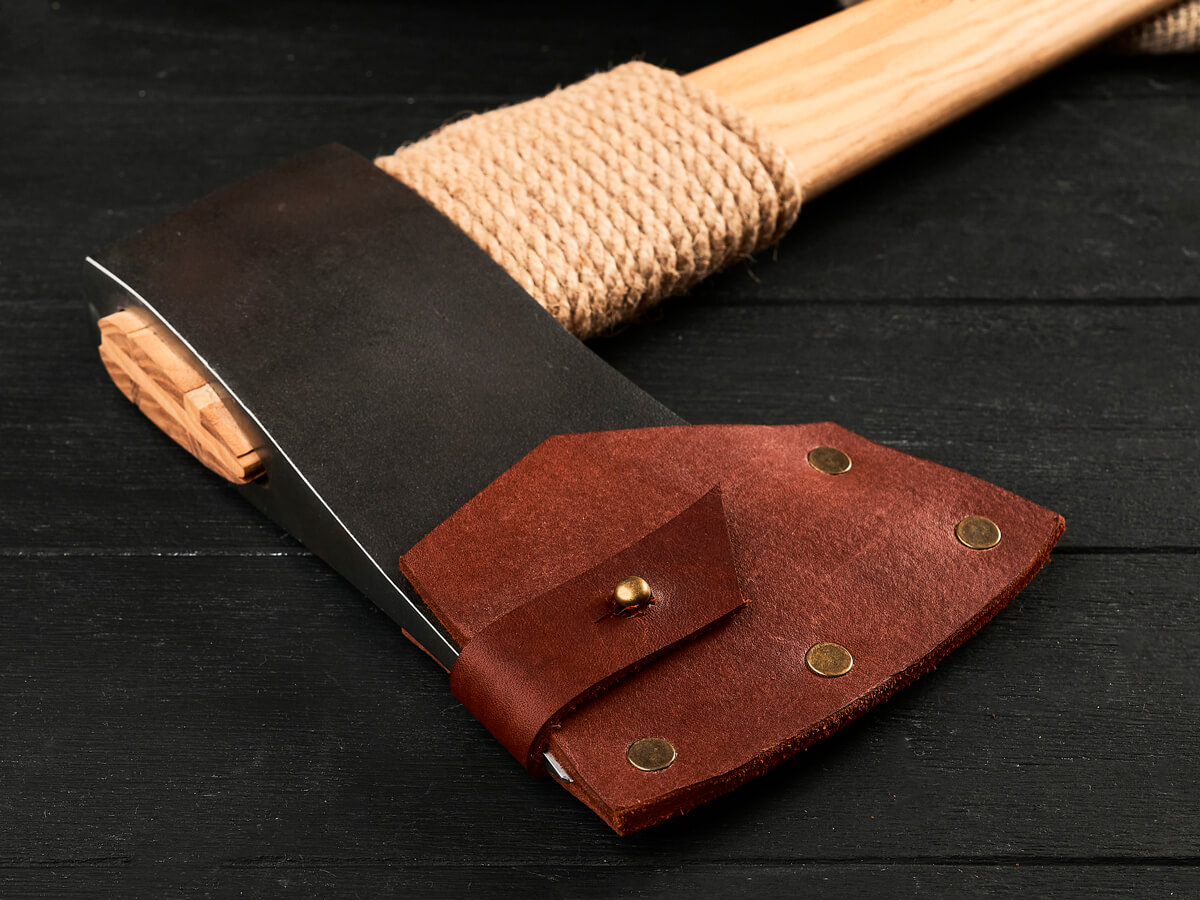 Каждый топор комплектуется ножнами из натуральной кожи. Плотная, аккуратно прошитая кожа защищает режущую кромку от влаги и повреждений, а также делает хранение и транспортировку безопасными.