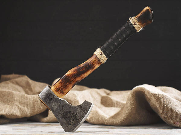 Топор символизирует силу, защиту и решительность, объединяя в себе лучшие традиции кузнечного мастерства и природную мощь. Он выполнен из прочной стали и способен перерубить полено вместе с выбитым в него гвоздем.