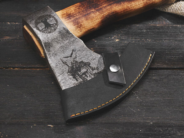 Топор «Один» изысканно оформлен в духе скандинавских мастеров: полотно украшает изображение самого Одина и его вечных спутников – воронов и волков, а на щеке выгравировано мировое древо Иггдрасиль. Такой стильный инструмент порадует вашего родственника или друга, если вы захотите сделать им подарок, а вам послужит надежным помощником в работе.