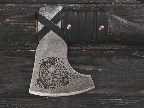 Рунические символы на лезвии смотрятся стильно и оригинально. Сталь на высоте, топор идеален в работе!