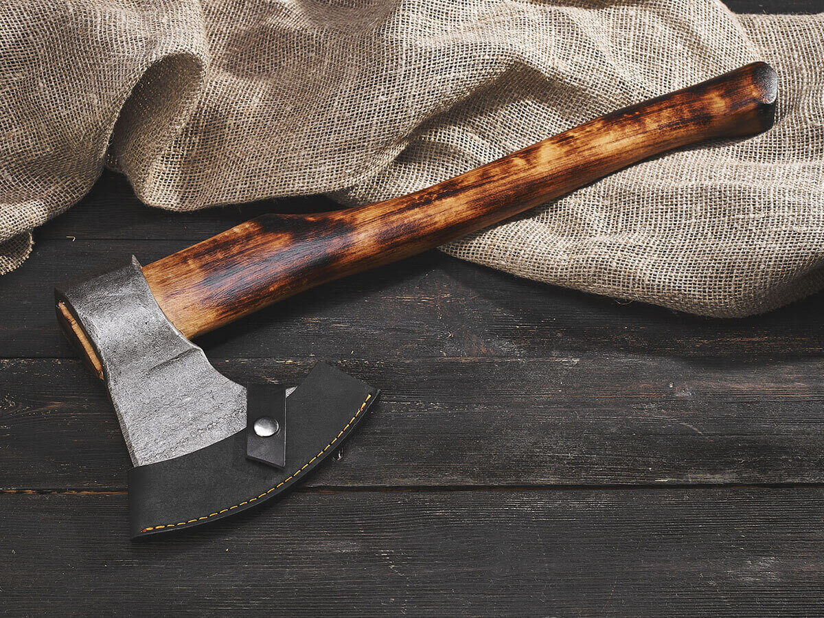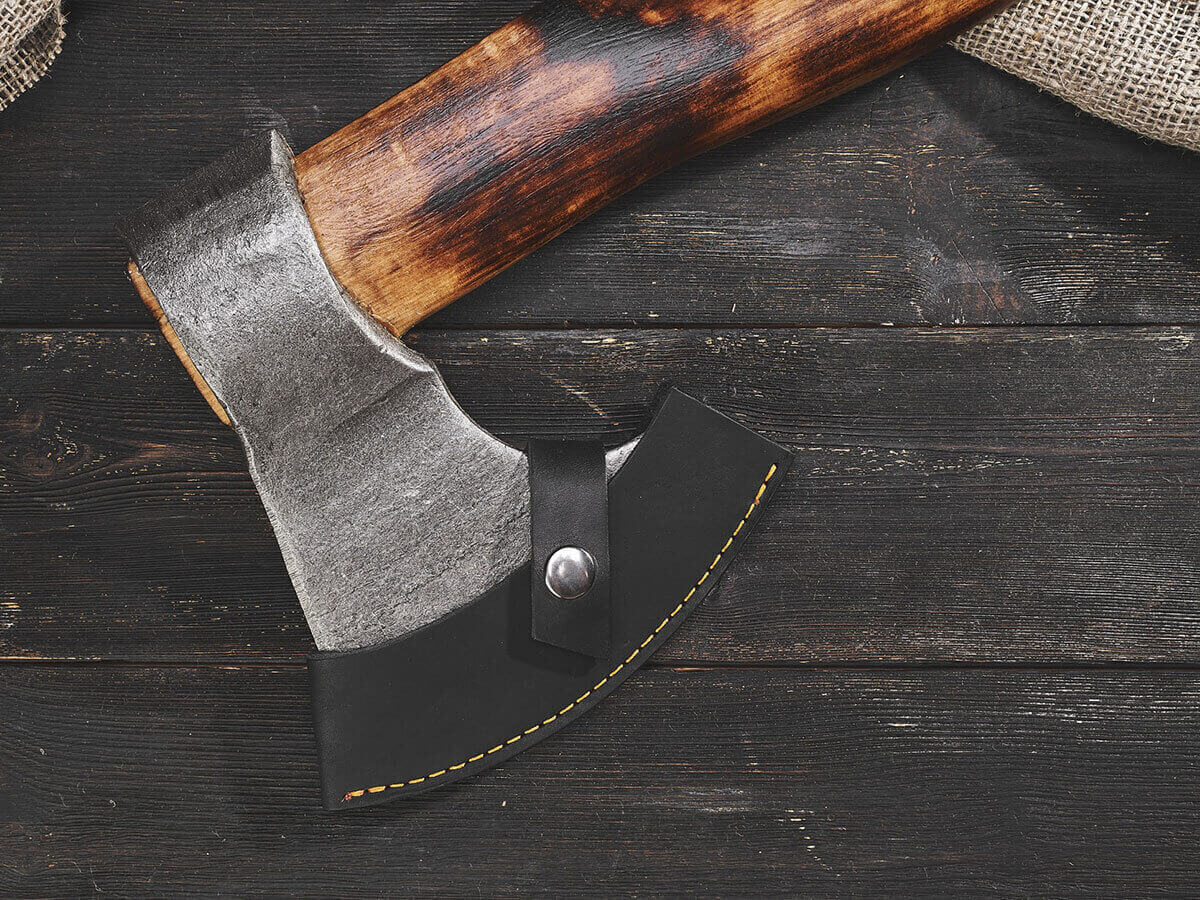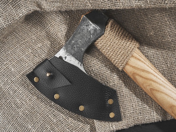 К изделию прилагаются ножны из натуральной кожи, которые делают топор более безопасным при хранении и переноске. Толстая, хорошо прошитая кожа надежно защищает лезвие от ржавчины и повреждений.