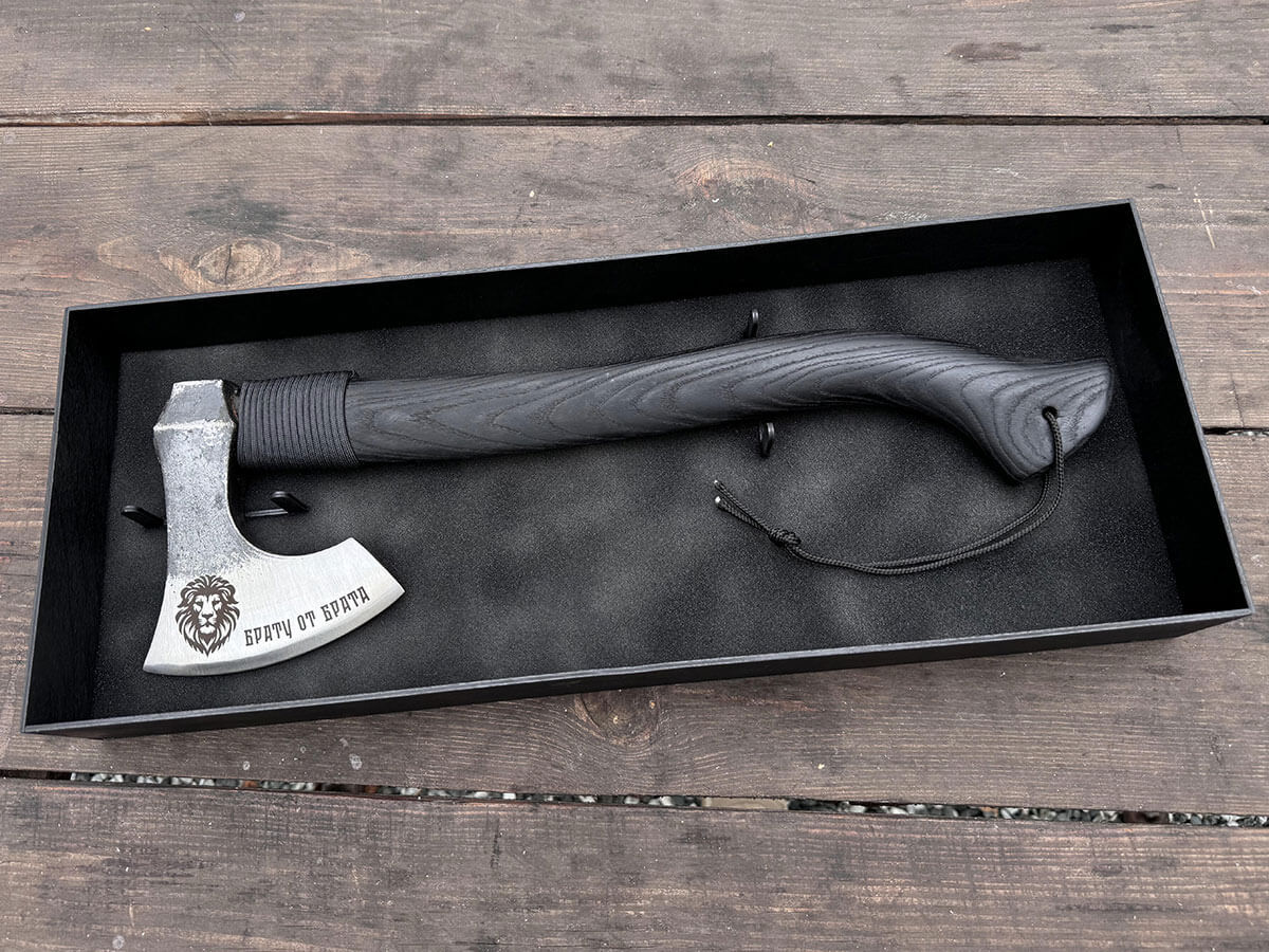 Топор выкован вручную, профессионально закален и крепко сбит. Это прочный и надежный помощник в хозяйстве, созданный для тех, кто ценит мужество, традиции и качество. Он станет верным спутником в работе, походе или на охоте, а также – сильным оберегом семейных ценностей.
