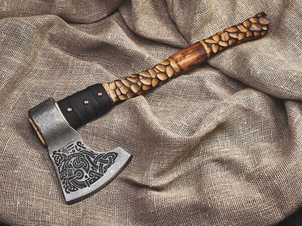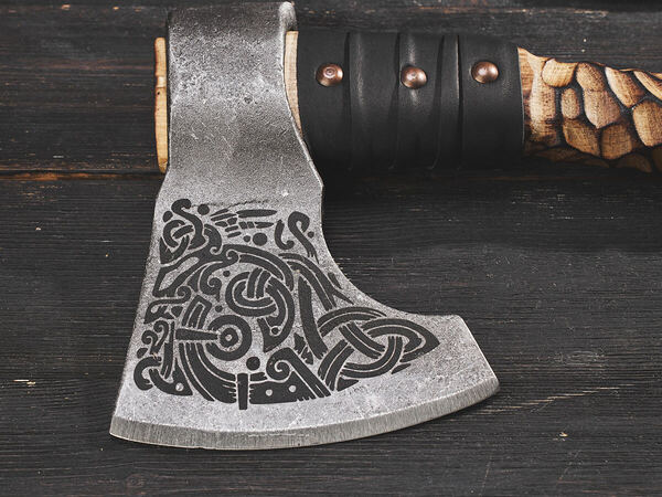 На полотно топора нанесена древняя руническая вязь, а удобная рукоять покрыта рубленой резьбой, которую любили русские мастера. Все это придает «Варягу» строгий боевой дух – напоминание о том, что топор служил нашим предкам не только рабочим инструментом, но и грозным оружием в битве.