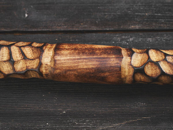Рукоять топора сделана из комля березы – самой толстой и крепкой части дерева. Обработка огнем защищает дерево от влаги, выгорания, грибка и насекомых. Такое топорище может прослужить десятилетия, не требуя особого ухода.