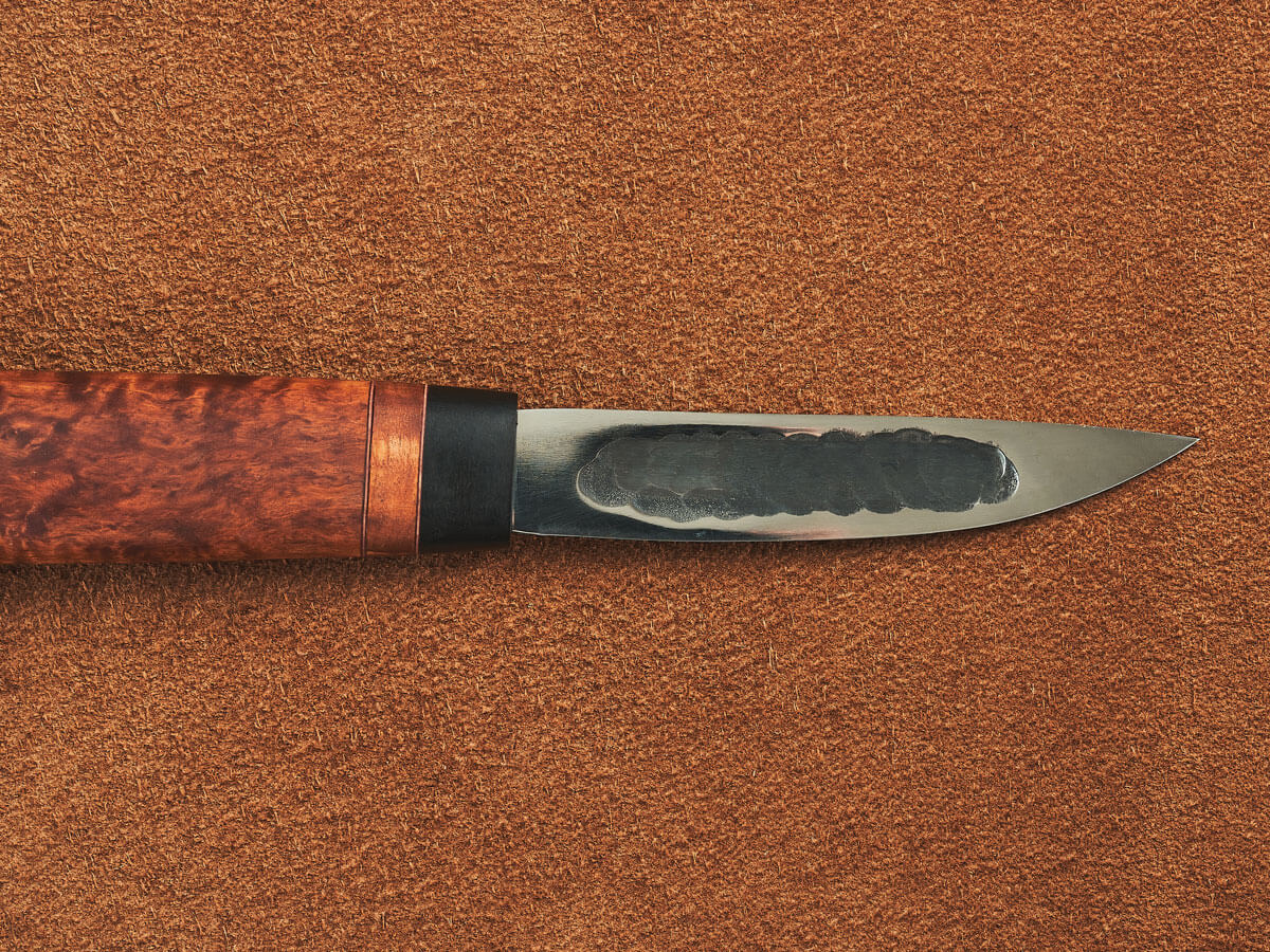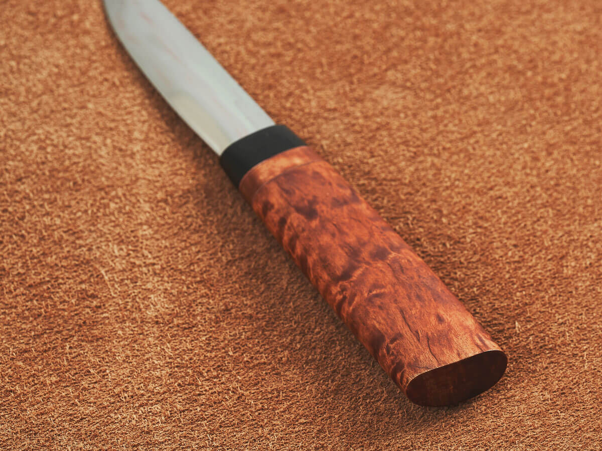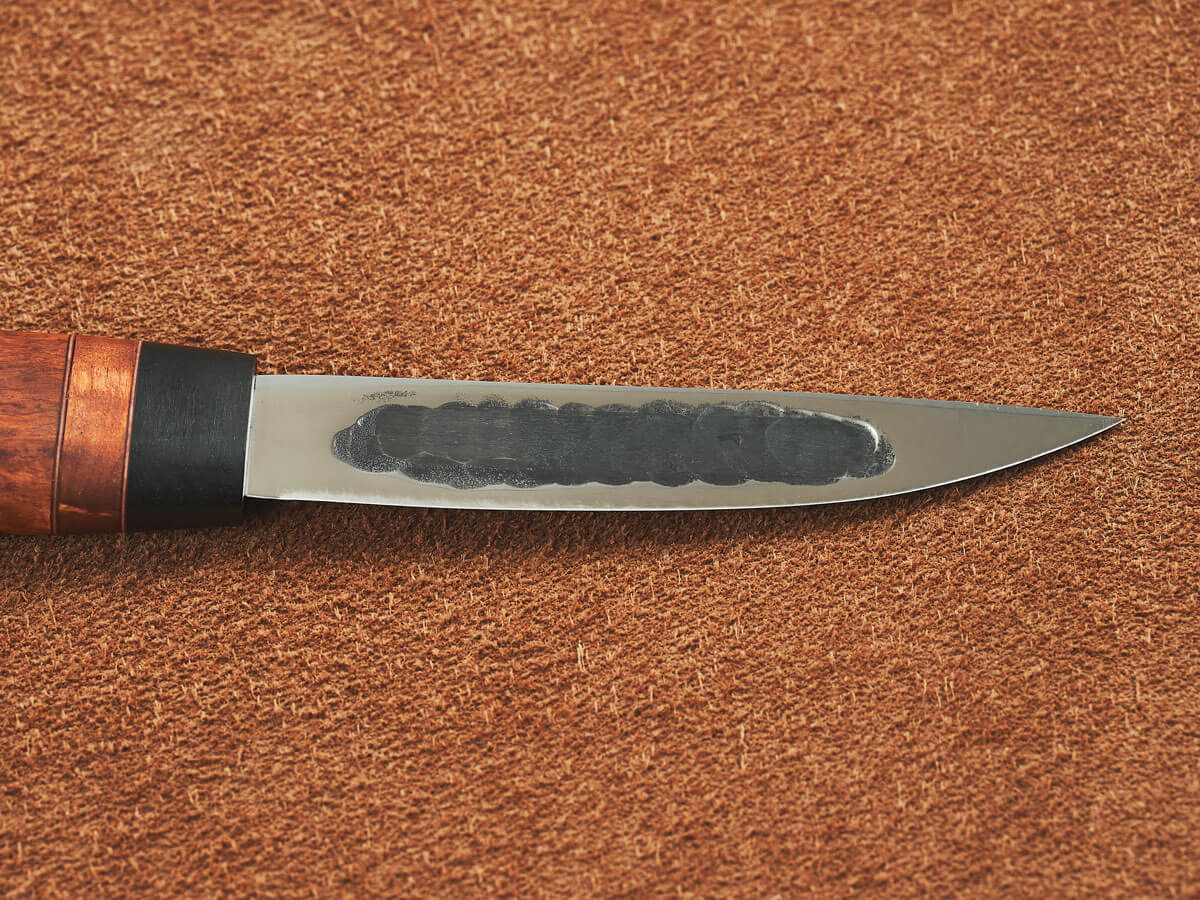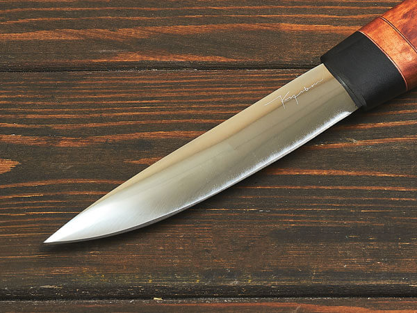Главной особенностью якутского ножа является асимметричный профиль клинка: он заточен только с одной стороны, а на другой имеет слегка выпуклую линзу. Такая форма очень удобна для контроля: рука легко управляет инструментом и позволяет входить в материал точно на нужную глубину.