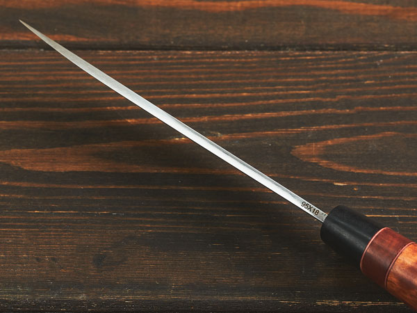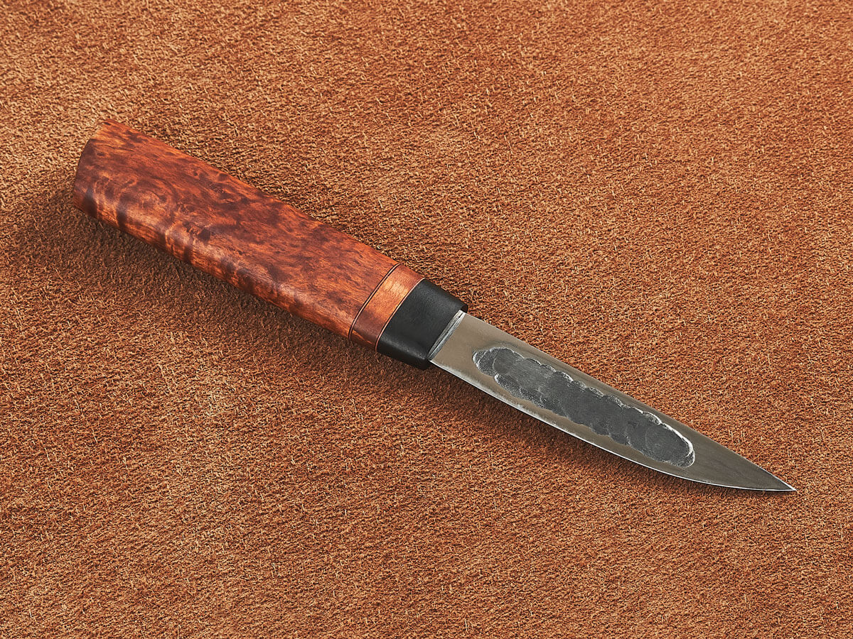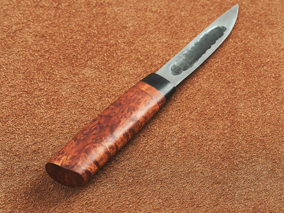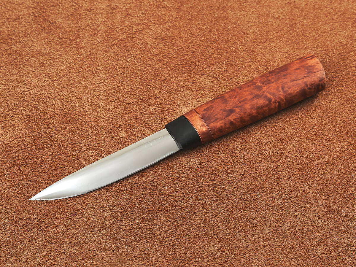 Главной особенностью якутского ножа является асимметричный профиль клинка: он заточен только с одной стороны, а на другой имеет слегка выпуклую линзу. Такая форма очень удобна для контроля: рука легко управляет инструментом и позволяет входить в материал точно на нужную глубину.