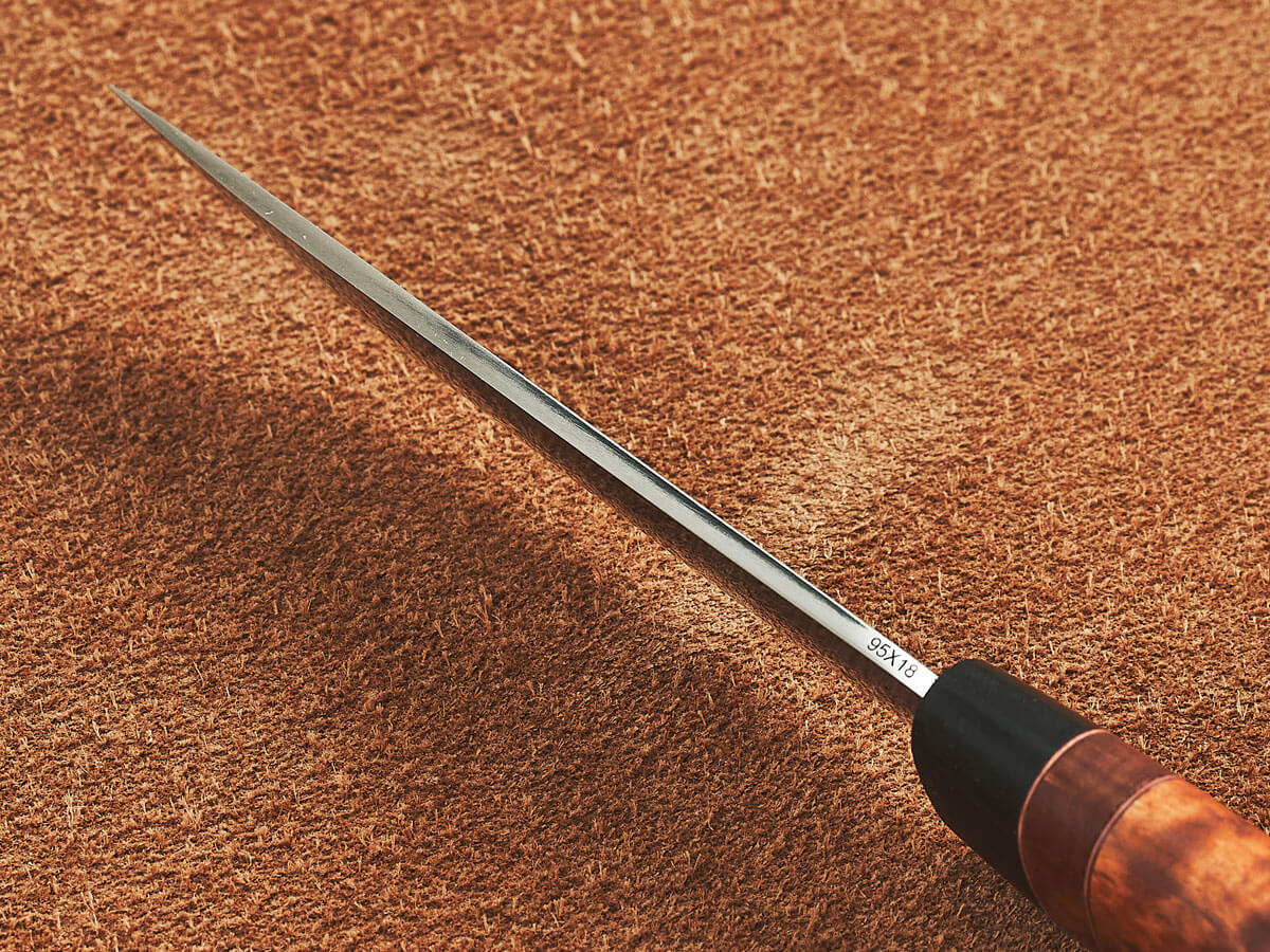 Сталь 95Х18 немного мягче, но при этом более гибкая, прекрасно показывает себя при использовании под нагрузкой и обладает еще лучшими антикоррозийными свойствами. Ножи, изготовленные из этой стали, не ржавеют, не покрываются пятнами и сохраняют свой блеск.