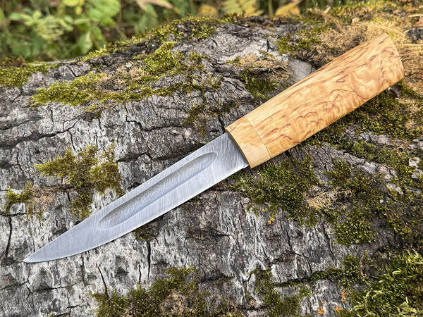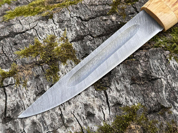 Обожаю якутские ножи, поэтому не смог устоять перед соблазном заказать и якута из дамасской стали. Красивый узор с отличной асимметричной заточкой, линза и дол не оставят равнодушным ни одного охотника. Пользуюсь с радостью и удовольствием. Спасибо вам!