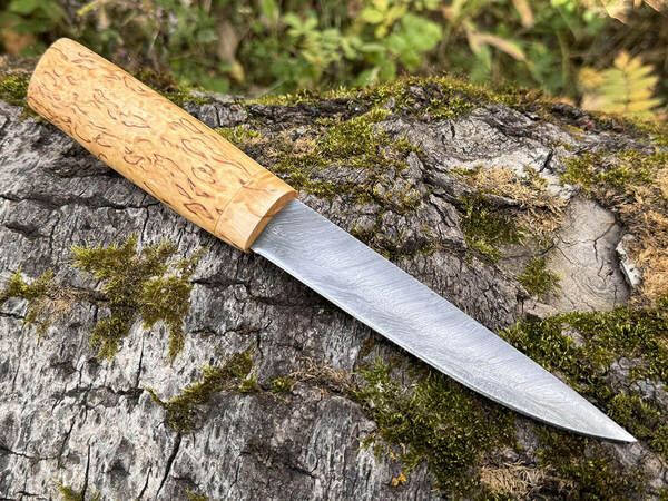 Классный нож! Качественная дамасская сталь, клинок бесподобный, заточен прекрасно. Отличная рукоять из карелки. Рад приобретённому инструменту.