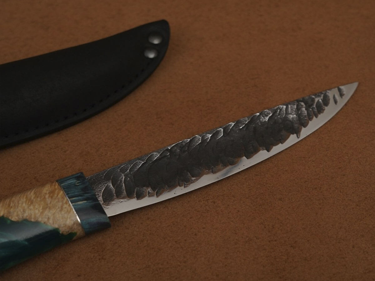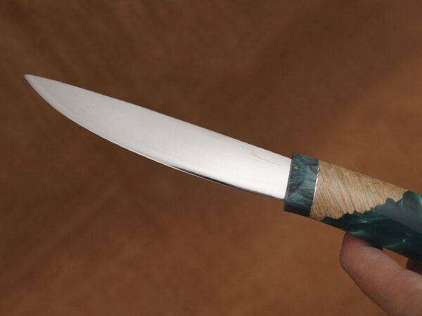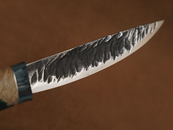 Главной особенностью якутского ножа является асимметричный профиль клинка: он заточен только с одной стороны, а на другой имеет слегка выпуклую линзу. Такая форма очень удобна для контроля: рука легко управляет инструментом и позволяет входить в материал точно на нужную глубину.