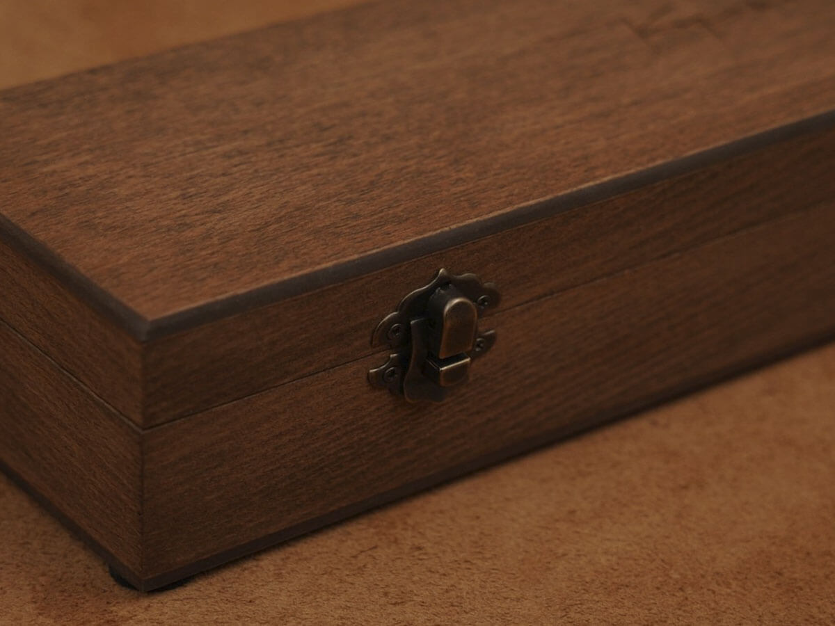 В комплект входит элегантная шкатулка-пенал, изготовленная из массива бука. Дерево пропитано специальным экологически чистым маслом, которое делает материал более долговечным, защищая его от влаги, гниения и грибка.