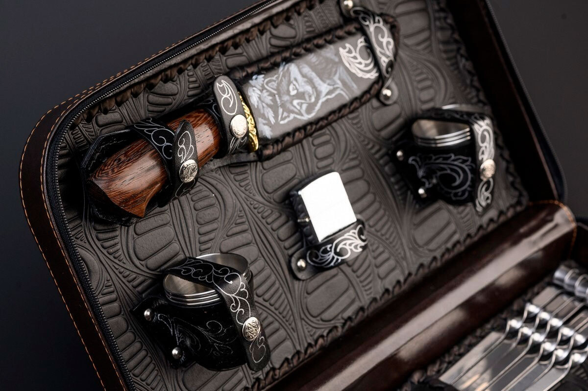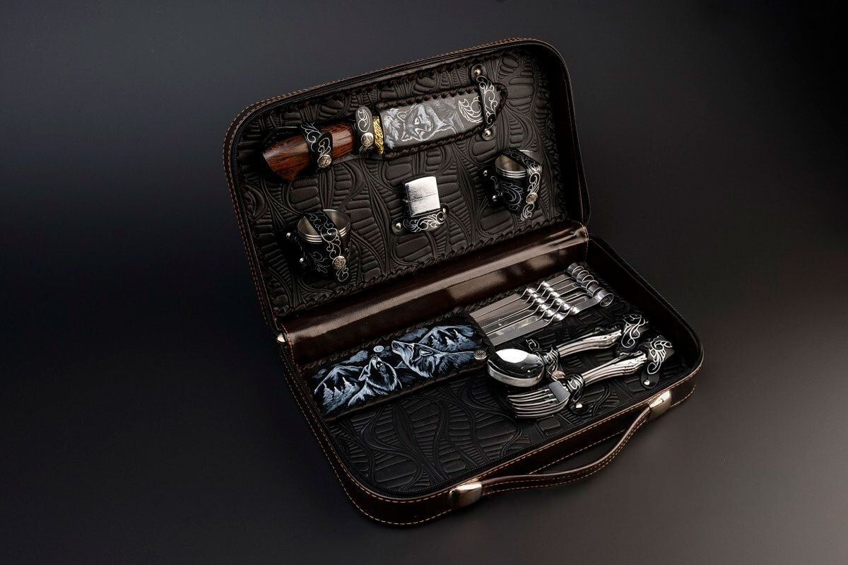 Такой комплект удобно брать с собой в поездки на автомобиле, на рыбалку, охоту или пикник. Всё необходимое аккуратно собрано в одном футляре, поэтому ничего не нужно искать или собирать отдельно.